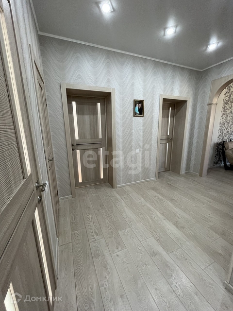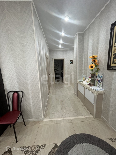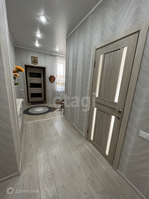 Характеристики: -По всему дому проведен видеонаблюдение. -Окна ПВХ -На полу всего дома постелен высококачественный ламинат и первый этаж отапливается от отопления и регулируется. -Потолки натяжные грамотно, красиво и экономично продумано освещение. -Стены выровнены и оклеены красивыми, качественными, подобранные под единый стиль дома обоями. -В кухне на первом этаже остается кухонный гарнитур -Санузел раздельный в кафеле, установлена акриловая ванна. -Межкомнатные двери в едином стиле. -Деревянная лестница. -При входе полы тамбура из плитки и отапливаются. - Ухоженный сад-огород с теплицей.