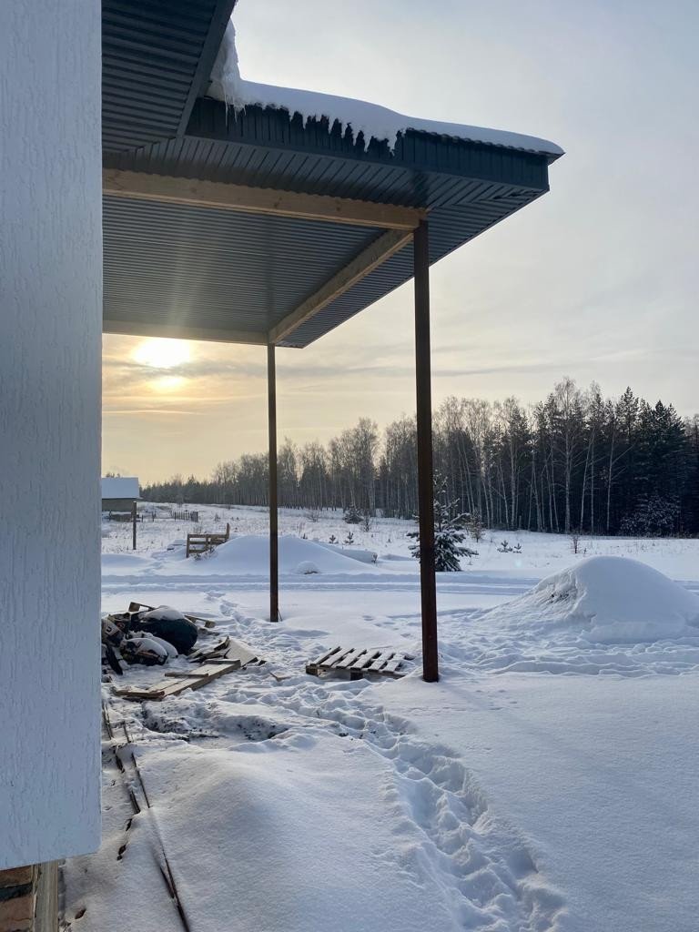Дом, общей площадью 120 кв.м., материал стен- газобетон+утеплитель, фасад-короед, крыша-профнастил. В доме три раздельные спальни, совмещенная гостиная с кухней, с выходом на террасу, два с/у, котельная, коридор.