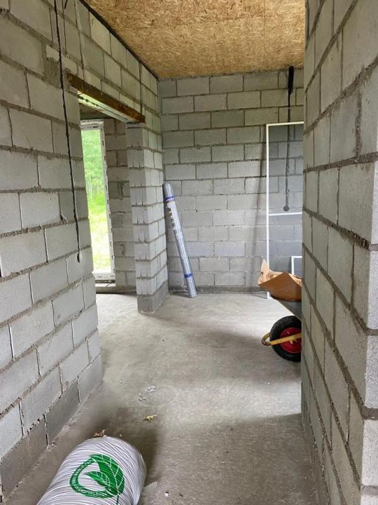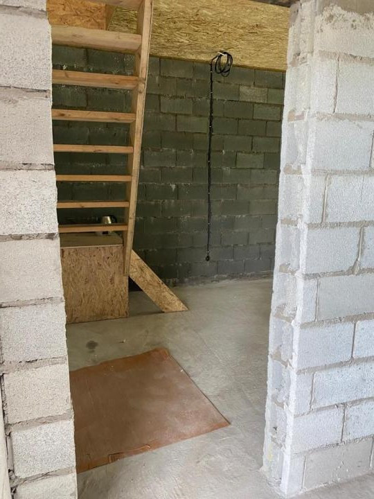 На первом этаже дома расположена большая кухня-гостиная с французским окном, сан узел.