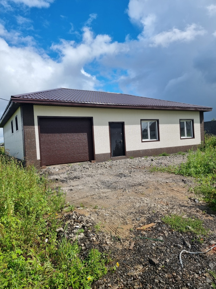 Предлагается к продаже новый дом 150 кв.м. Дом включает в себя просторную кухню-гостинную, три раздельных комнаты, сан узел и гараж. Дом построен из отсево-блоков, утеплитель пеноплекс 10, обшит фибро-панели. Фундамент ленточный+буронабивные сваи, перекрытия железобетонные, отопление электрическое-водяные тёплые полы.