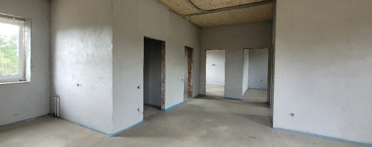 Продаю дом в предчистовой отделке общей площадью 77 кв.м. Удобная планировка, две комнаты и просторная кухня-гостиная с французским окном, есть выход на террасу.