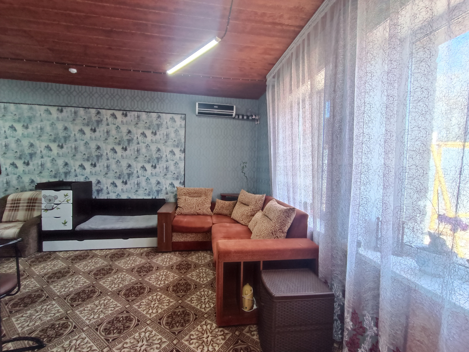 Имеется теплая пристройка к дому из бруса, полностью обшита, утеплена, отделана 28 кв.м.