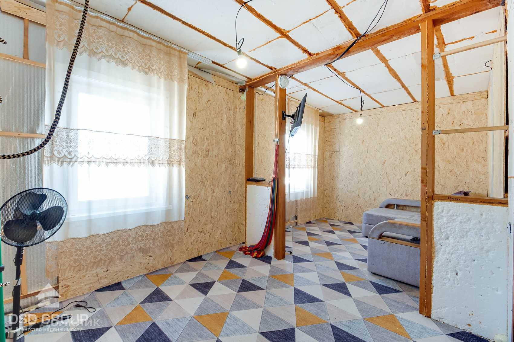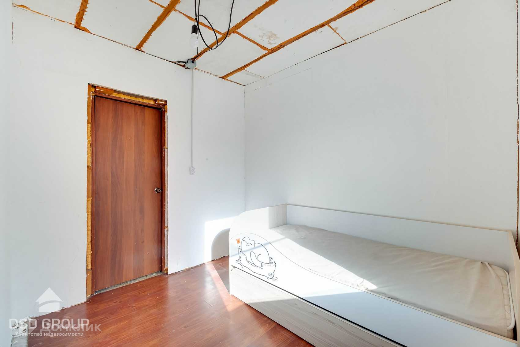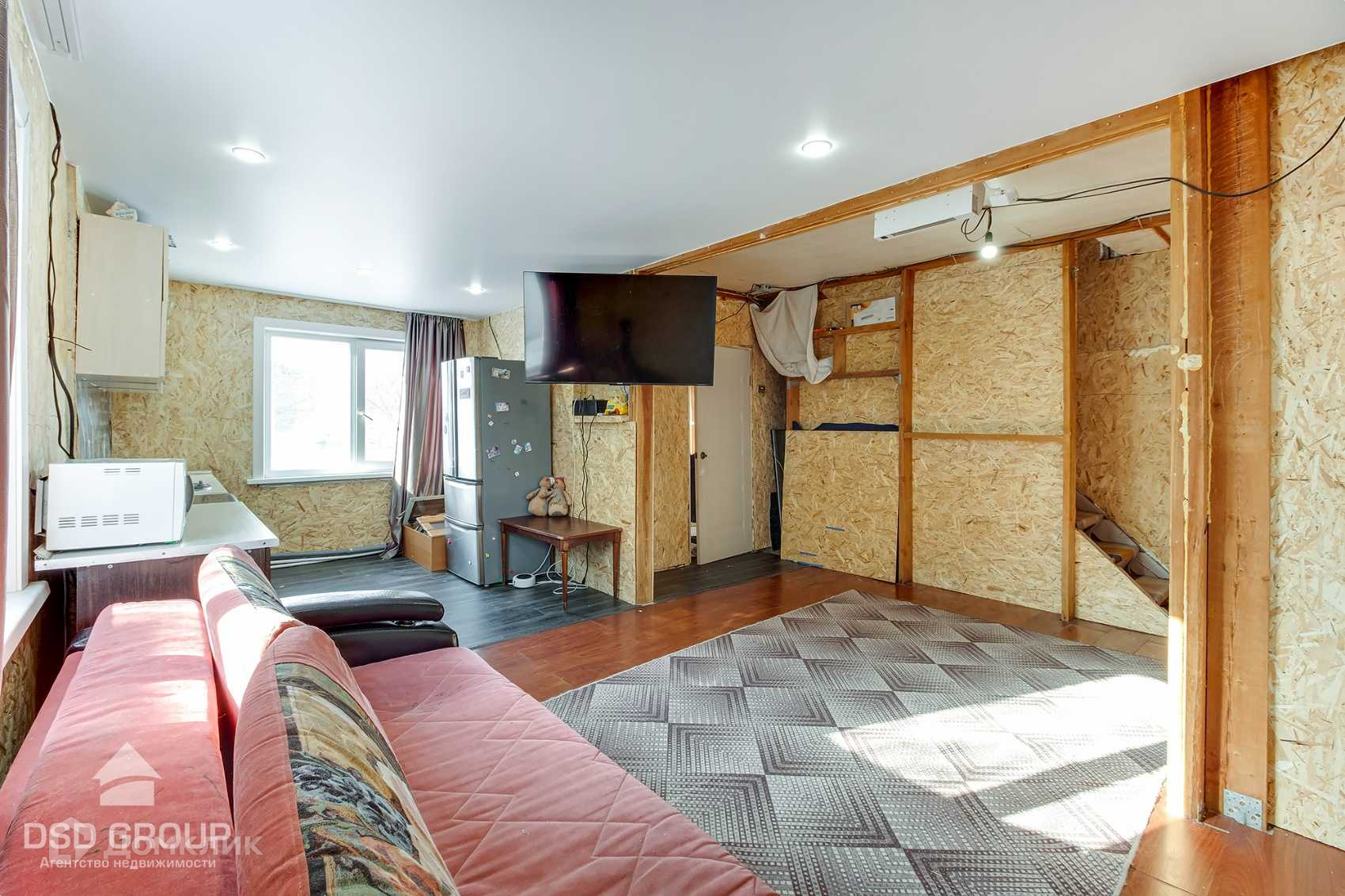 Без внутренней отделки , утеплен и зашит внутри фанерой.