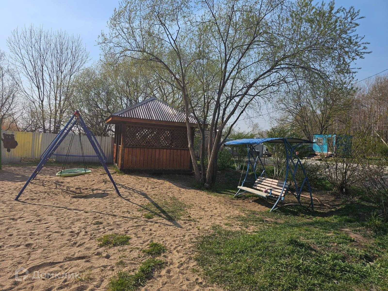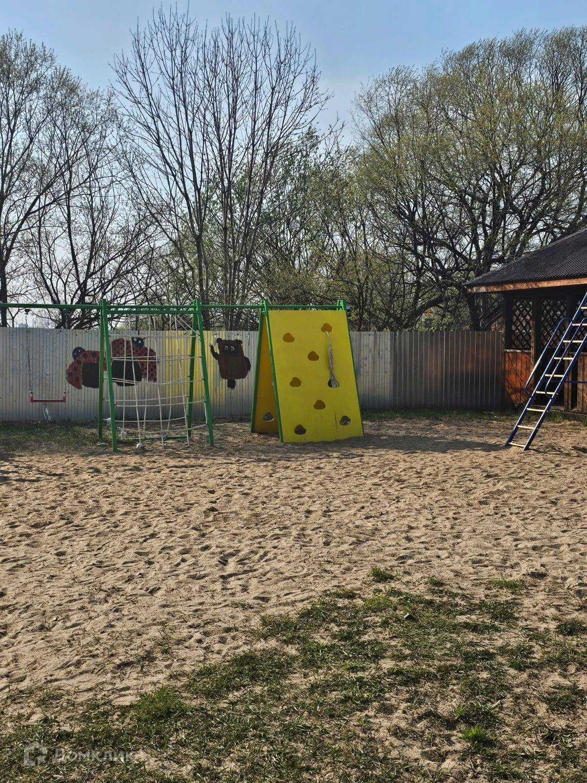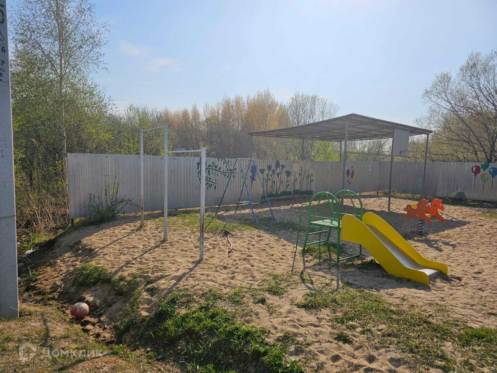 Возле дома детская площадка, зимой заливают каток.