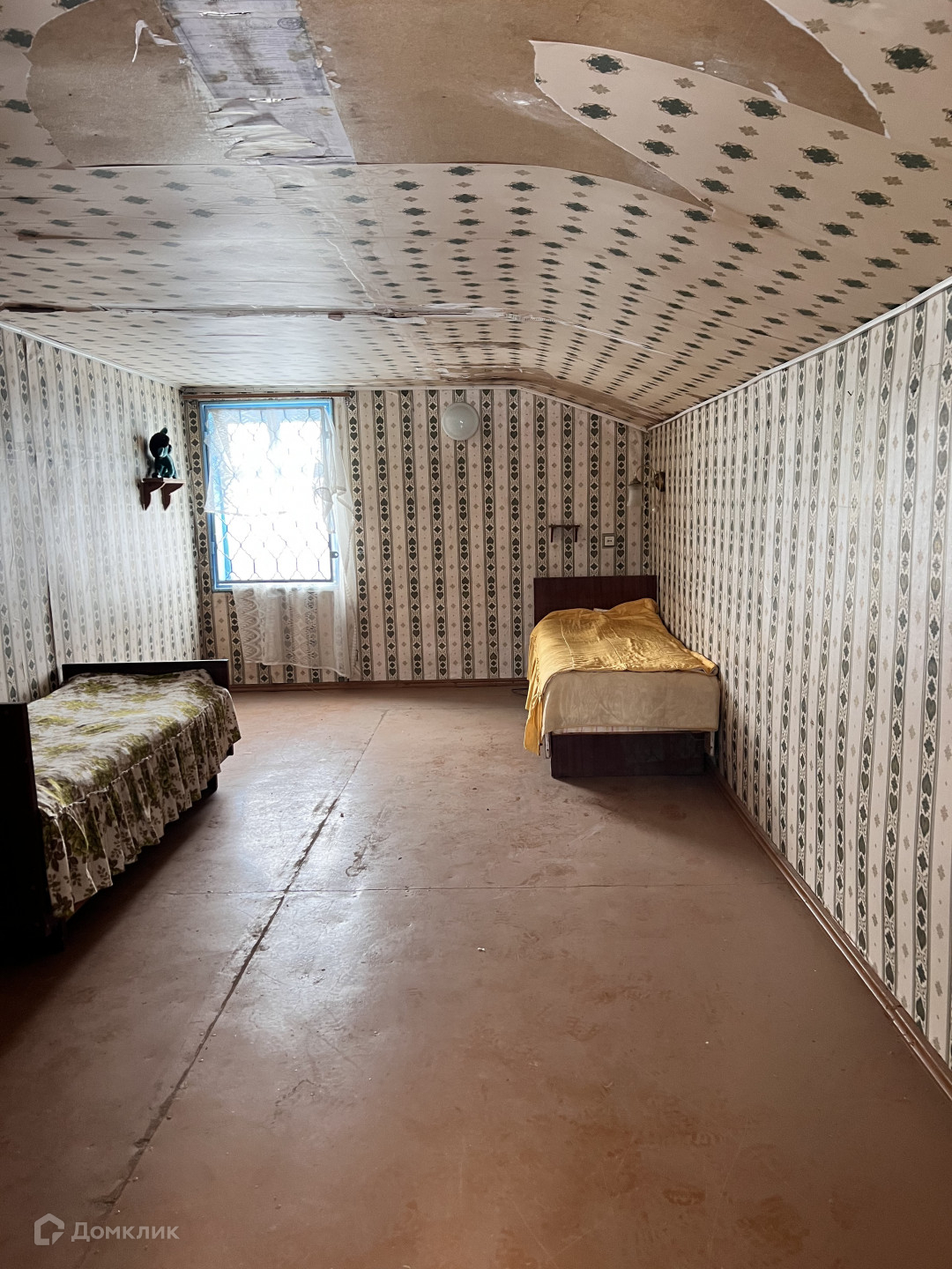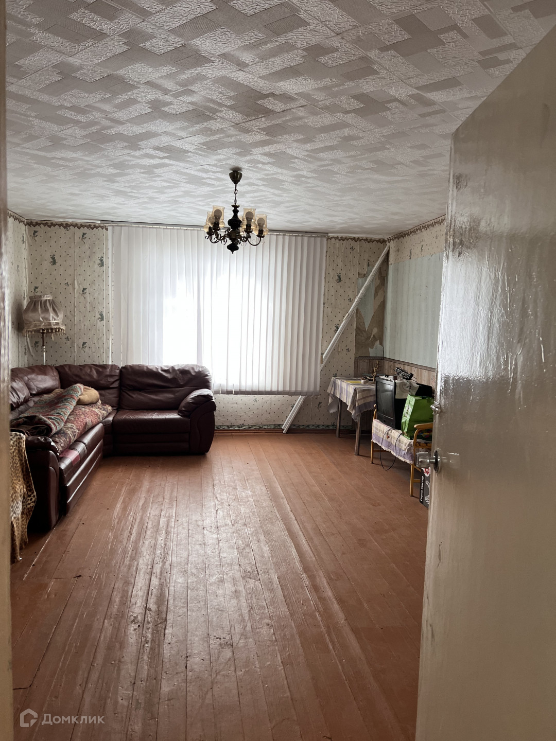 Внутри две большие комнаты и кухня.