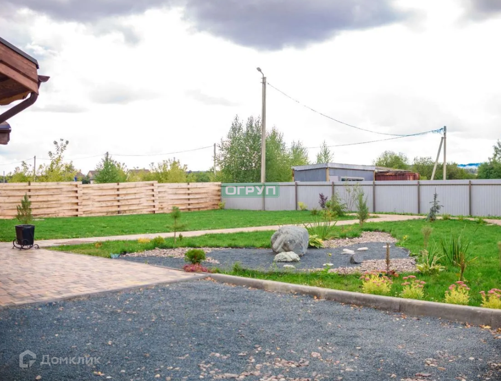 Участок облагорожен. Огорожен металлопрофилем, откатные ворота. Стоянка для автомобилей. Газоны, плитка, туи, березы. Видеонаблюдение.
