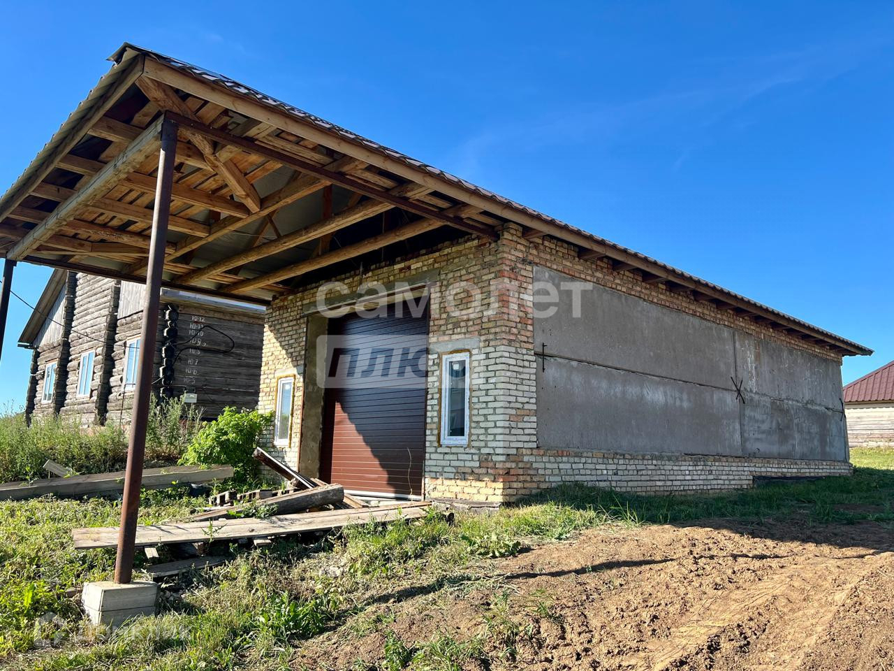 Участок - правильной формы, очищенный от мусора и травы. Хорошие подъездные пути. На участке есть большой гараж 72 кв.м., сруб с крышей под баню 35 кв.м.