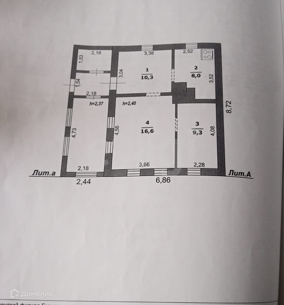 Общая площадь 44.2 м2