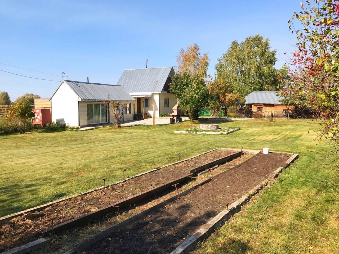 От дороги дом огорожен 4 сотками, которые можно узаконить для дальнейшего строительства.