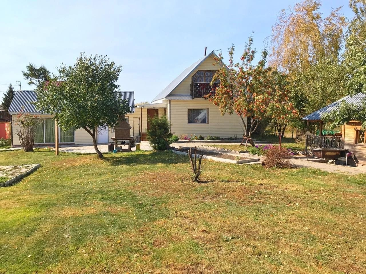 Дом 60 квадратов, сделан с душой, строили для себя. Отопление печное + конвекторные батареи. На участке 12соток расположены баня, зимняя беседка с печкой, летняя кухня, 3 сарайки, летний туалет. Своя скважина. Посеян газон, достаточно места под посадки.
