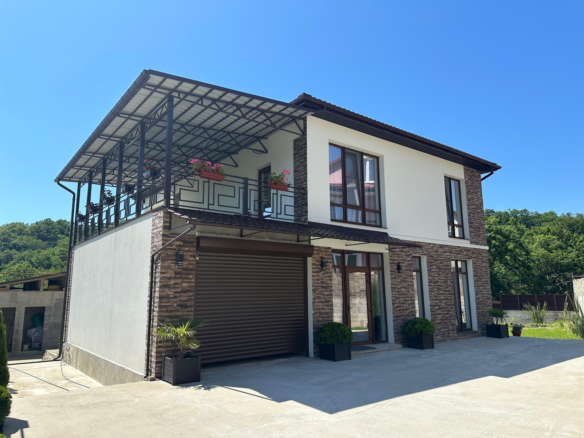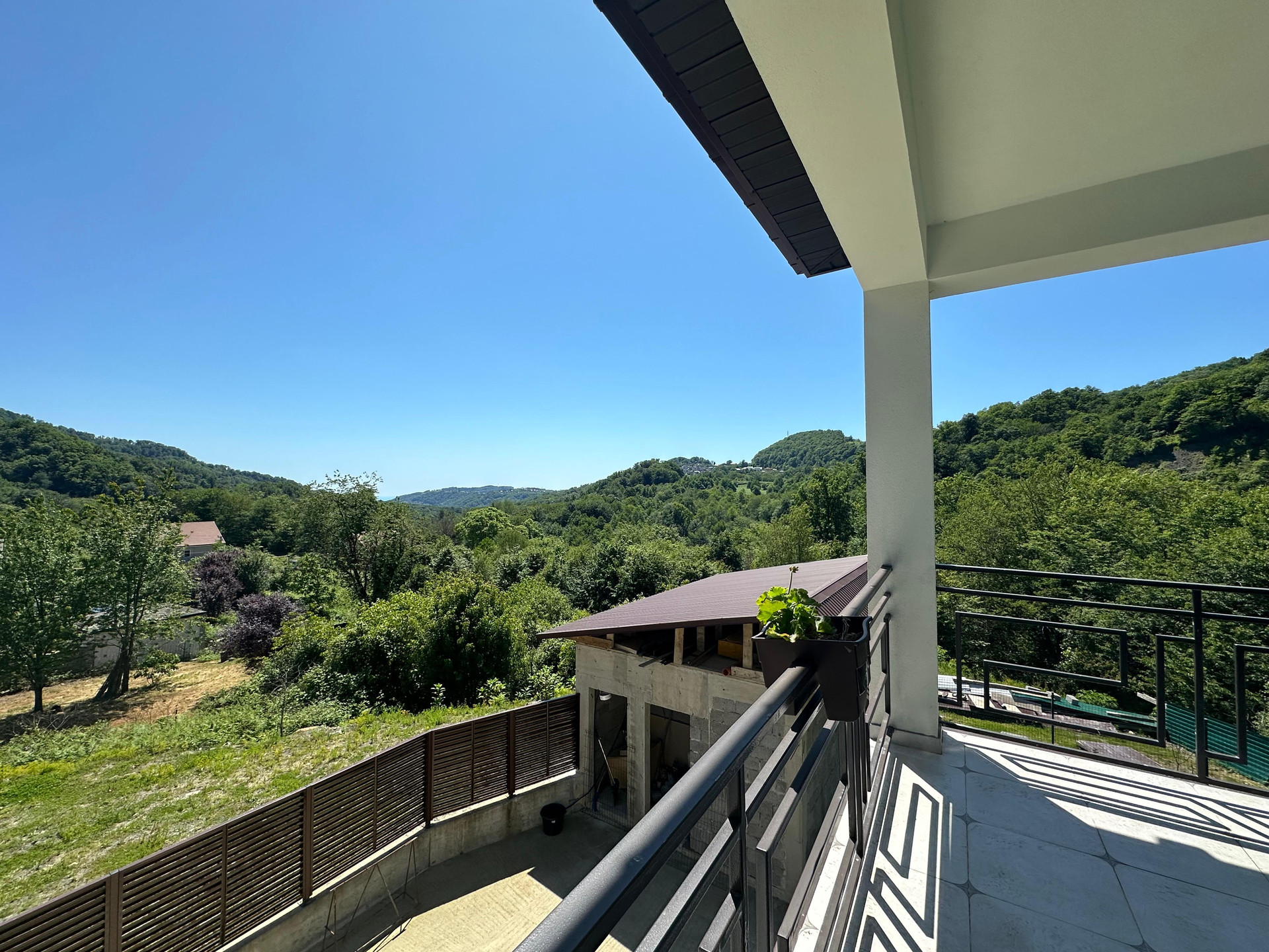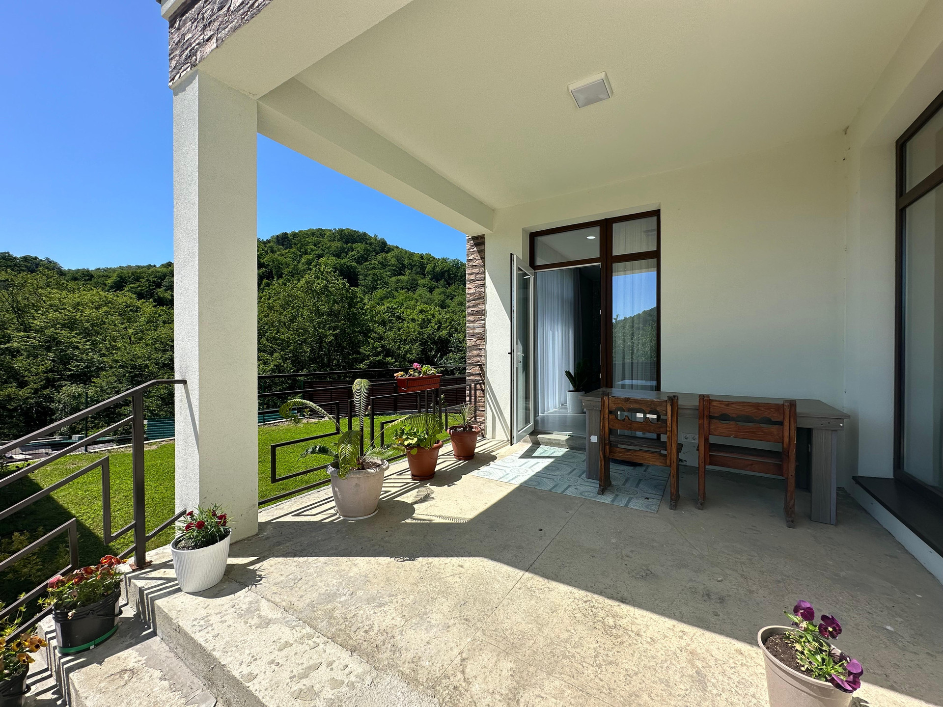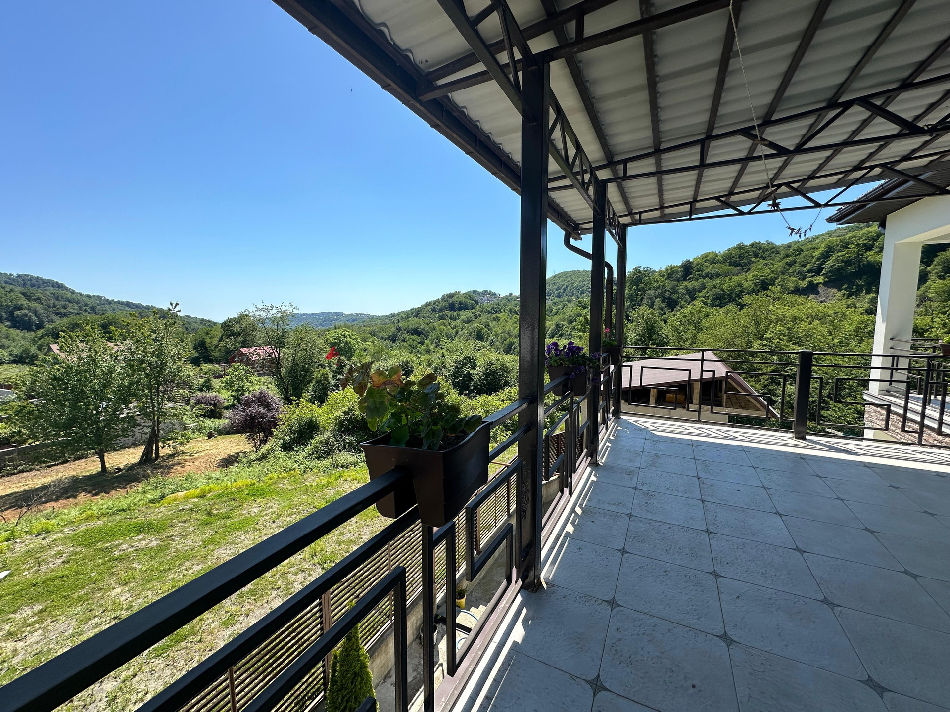Находится с самой живописной локации Сочи. Дом расположен так, что с трех сторон свободный вид на горы, лесопарк и море.