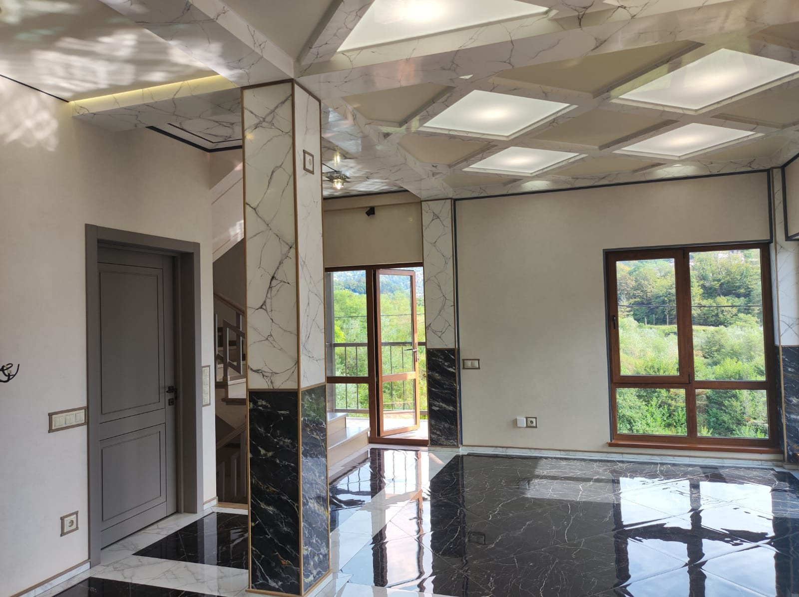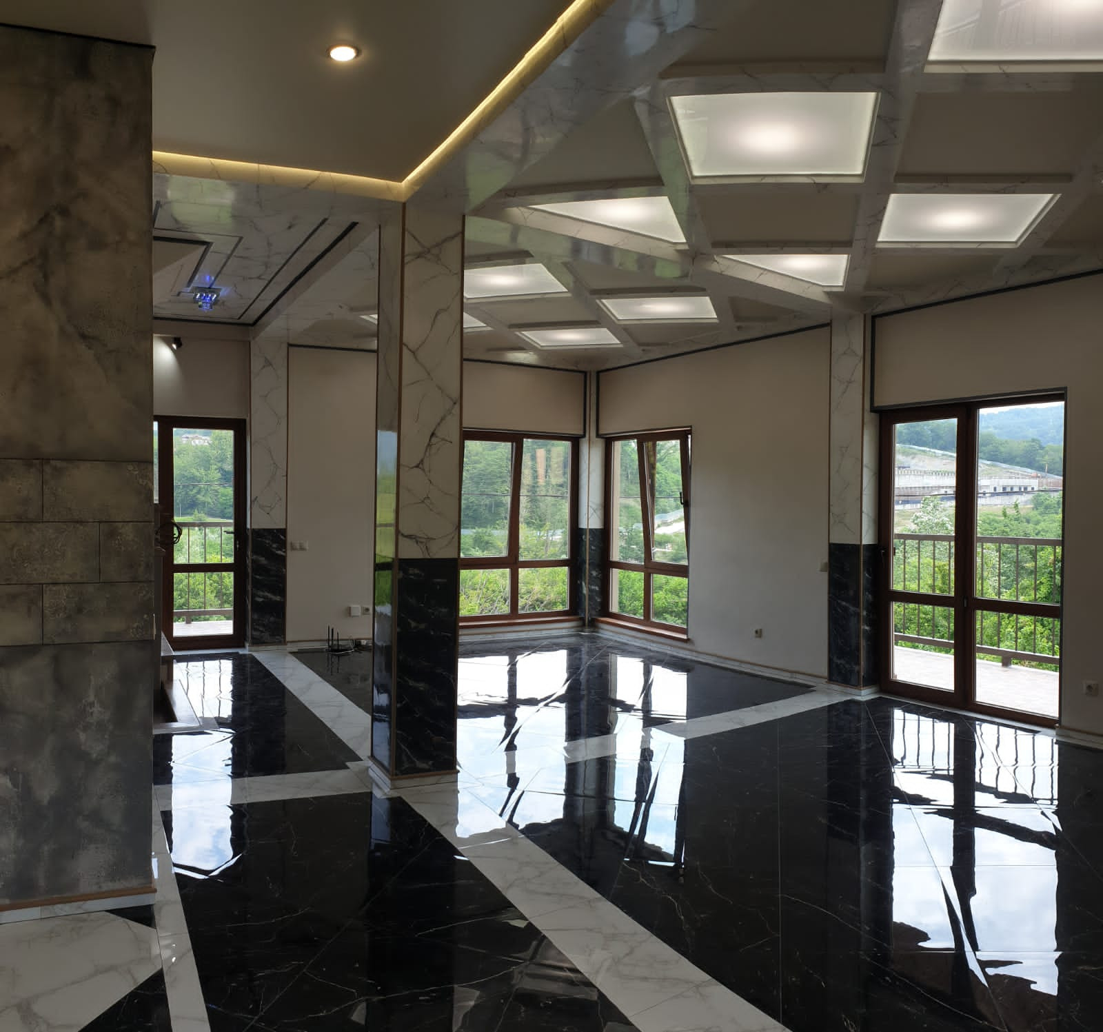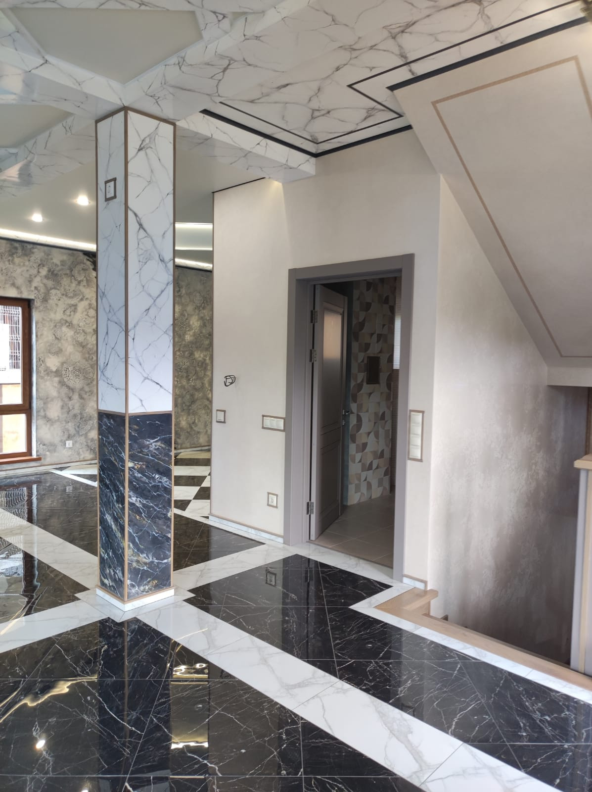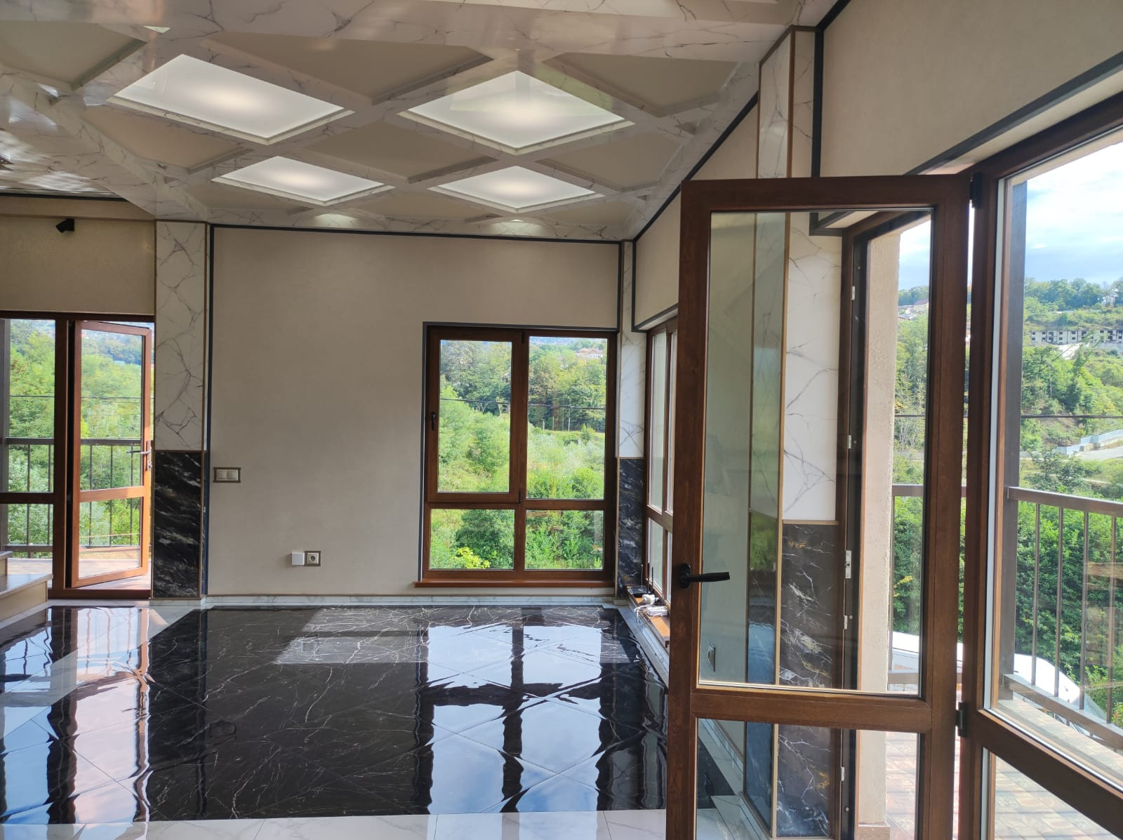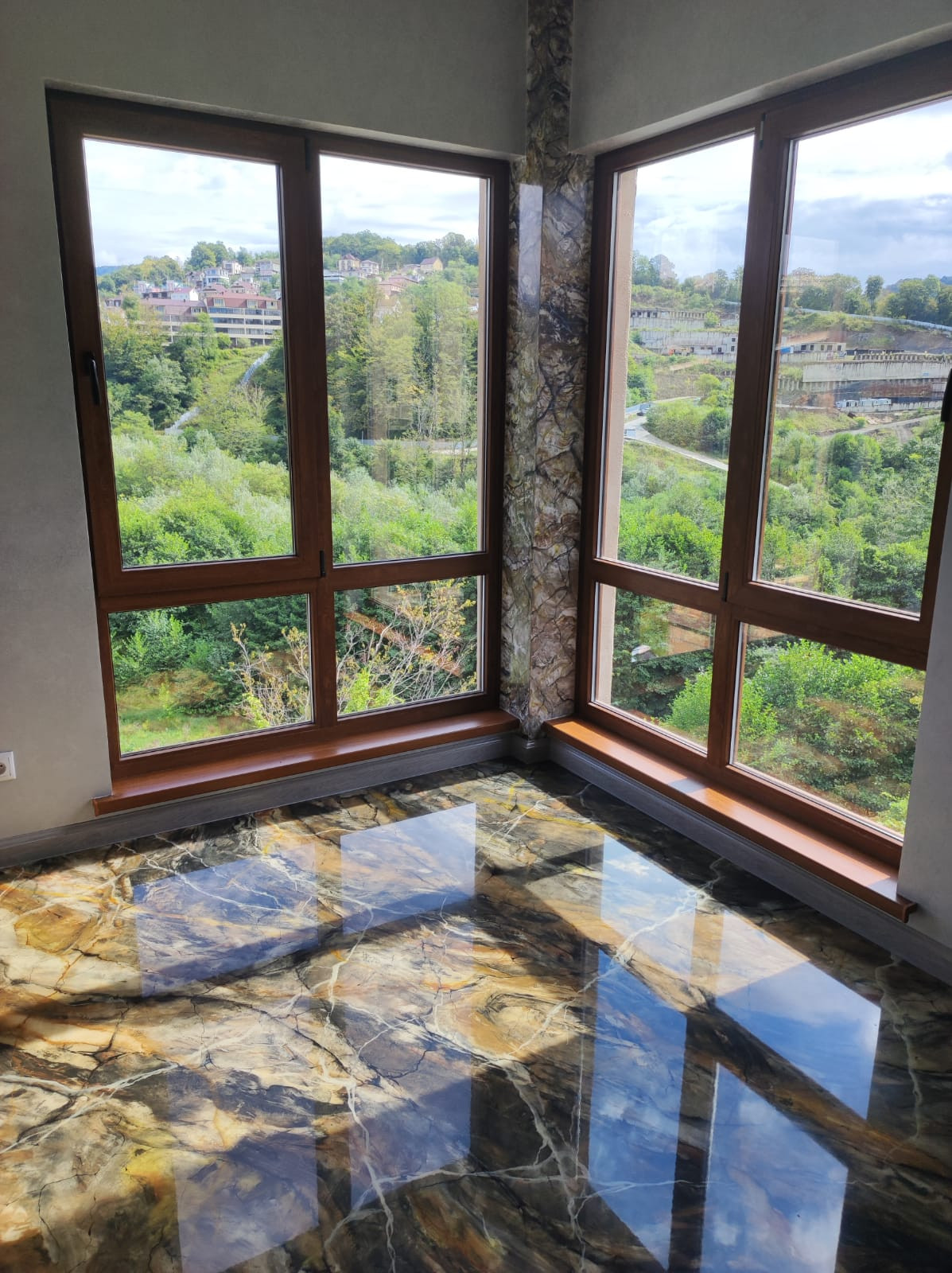 На третьем этаже наливные полы с невероятным узором! Панорамные окна премиального качества с немецкой фурнитурой..