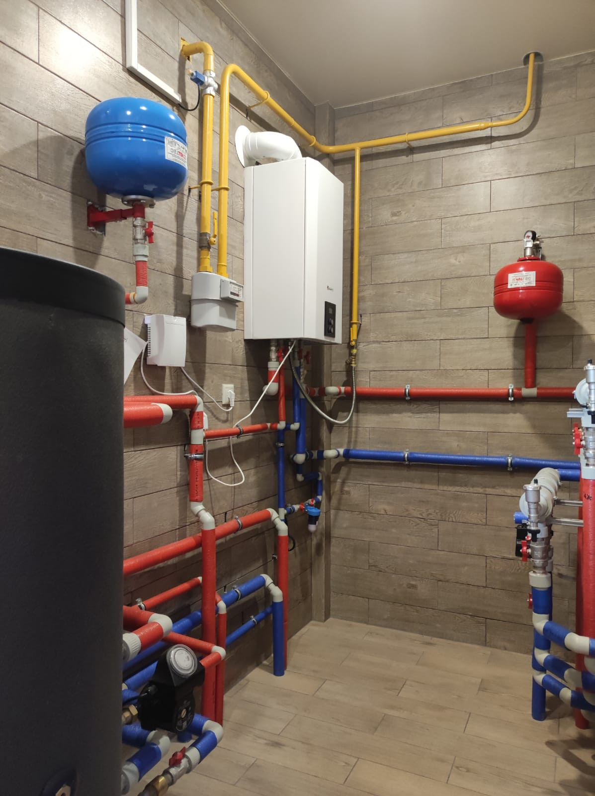 3 этажа. Коммуникации центральные, везде теплые полы от газа, отдельные контуры.