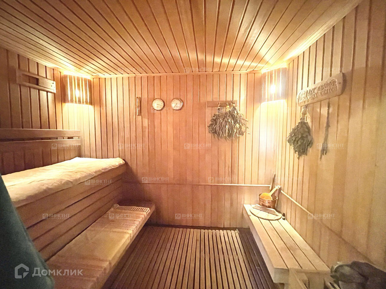 В доме на 1-ом этаже сделана просторная сауна с большой комнатой отдыха.