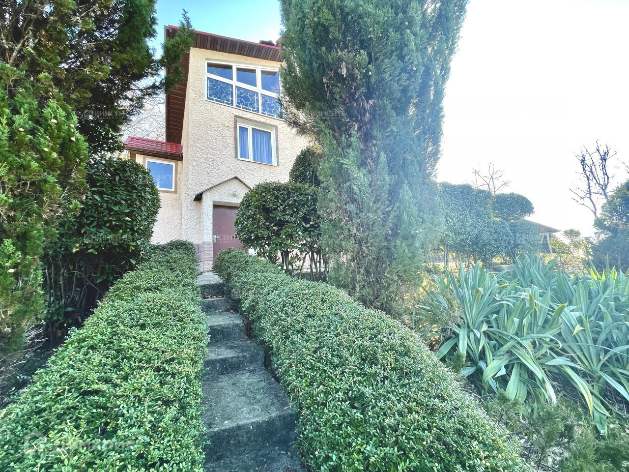 Арт. 38351812 Продается Дом с шикарной панорамой на море, город и горы, которая открывается прям с участка. Удобное расположение дома, выезд сразу на развязку дублера, с которой быстро можно добраться до Адлера и любого района Сочи. Дом находится в тихом спокойном месте на возвышенности и с одной стороны граничит с нац.парком. Свой закрытый подъезд к дому, где можно разместить 3 гостевых авто, на территории парковочное место под навесом.