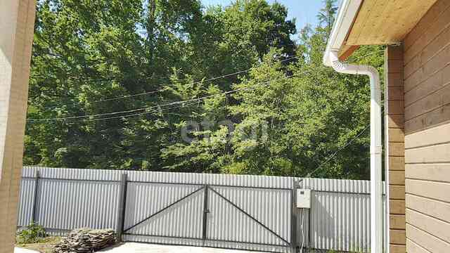Подъезд к владениям по бетонной дороге, вокруг участка забор, заезд на территорию через ворота. Есть парковочные места. Территория вокруг дома готова к озеленению. Есть беседка и зона барбекю.