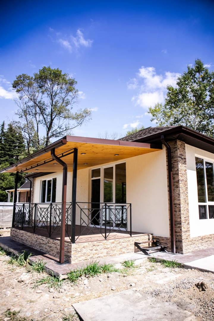 Лот № 143863. Продаю дом площадью 150 кв. м. в городе-курорте Сочи. Дом построен в 2019 году(есть видео- фото обзор строительства). Одноэтажный дом грамотно распланирован: 3 просторные спальни, кухня-гостиная (30 кв. м.) с выходом на летнюю террасу. Внутренние помещения сделаны без отделки. Снаружи есть отделка. Панорамные окна делают внутренние помещения особенно светлыми.