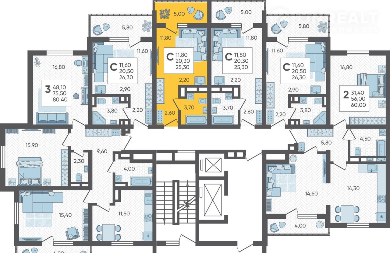 Общая площадь 25.3 м2