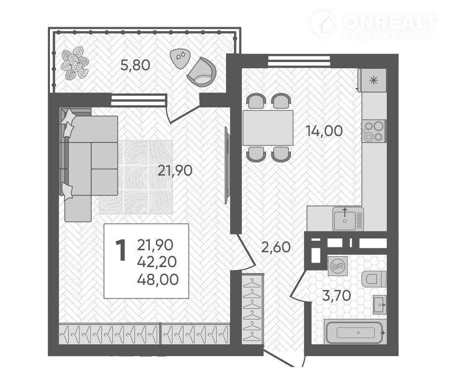 Общая площадь 48 м2