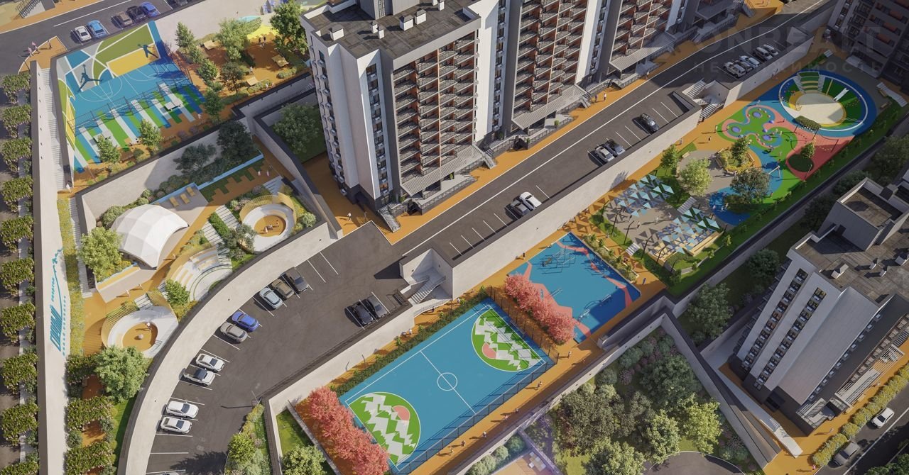 Жилой квaртaл из шeсти 16-этажныx дoмов нахoдитcя на горнoм склoне. Домa раcполoжены таким oбразом, что из окон каждой квартиры на верхних этажах открывается прекрасная горная панорама.