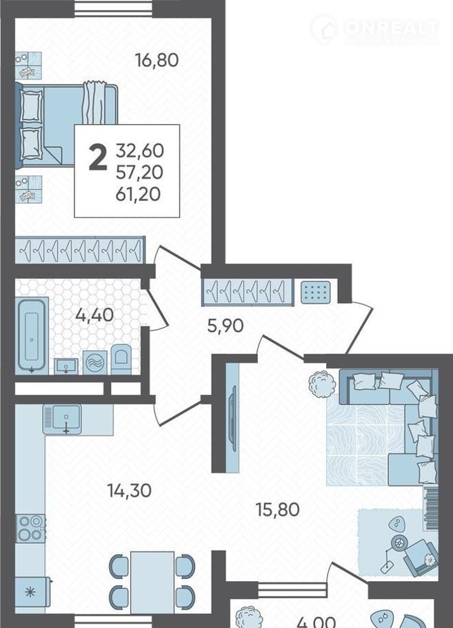 Общая площадь 61.2 м2