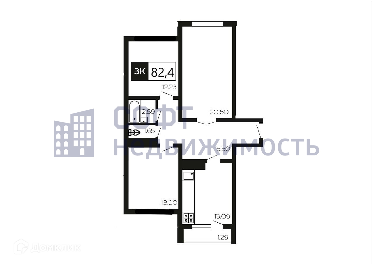 Общая площадь 82 м2
