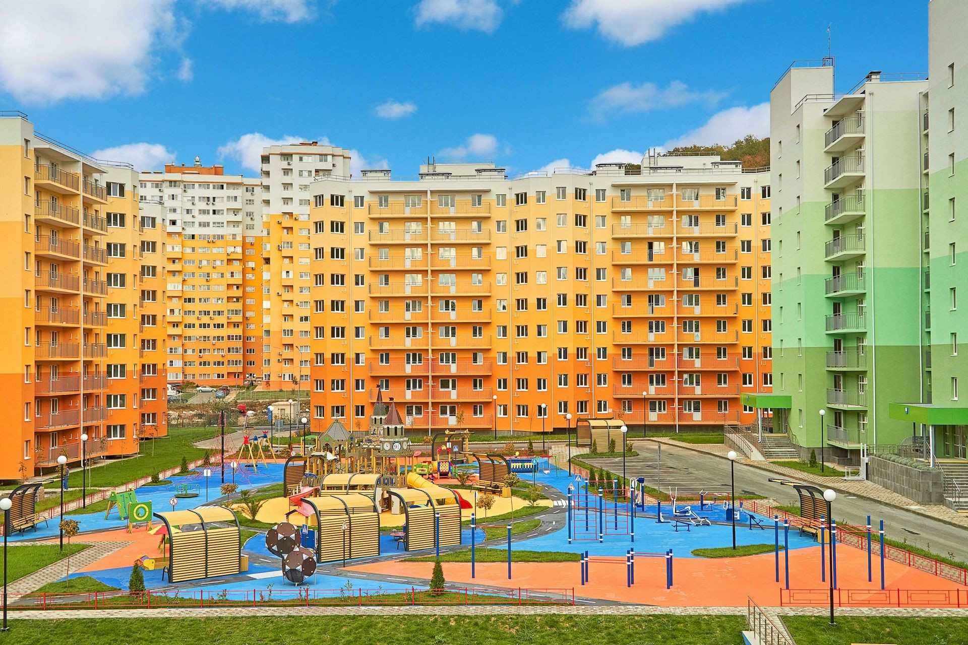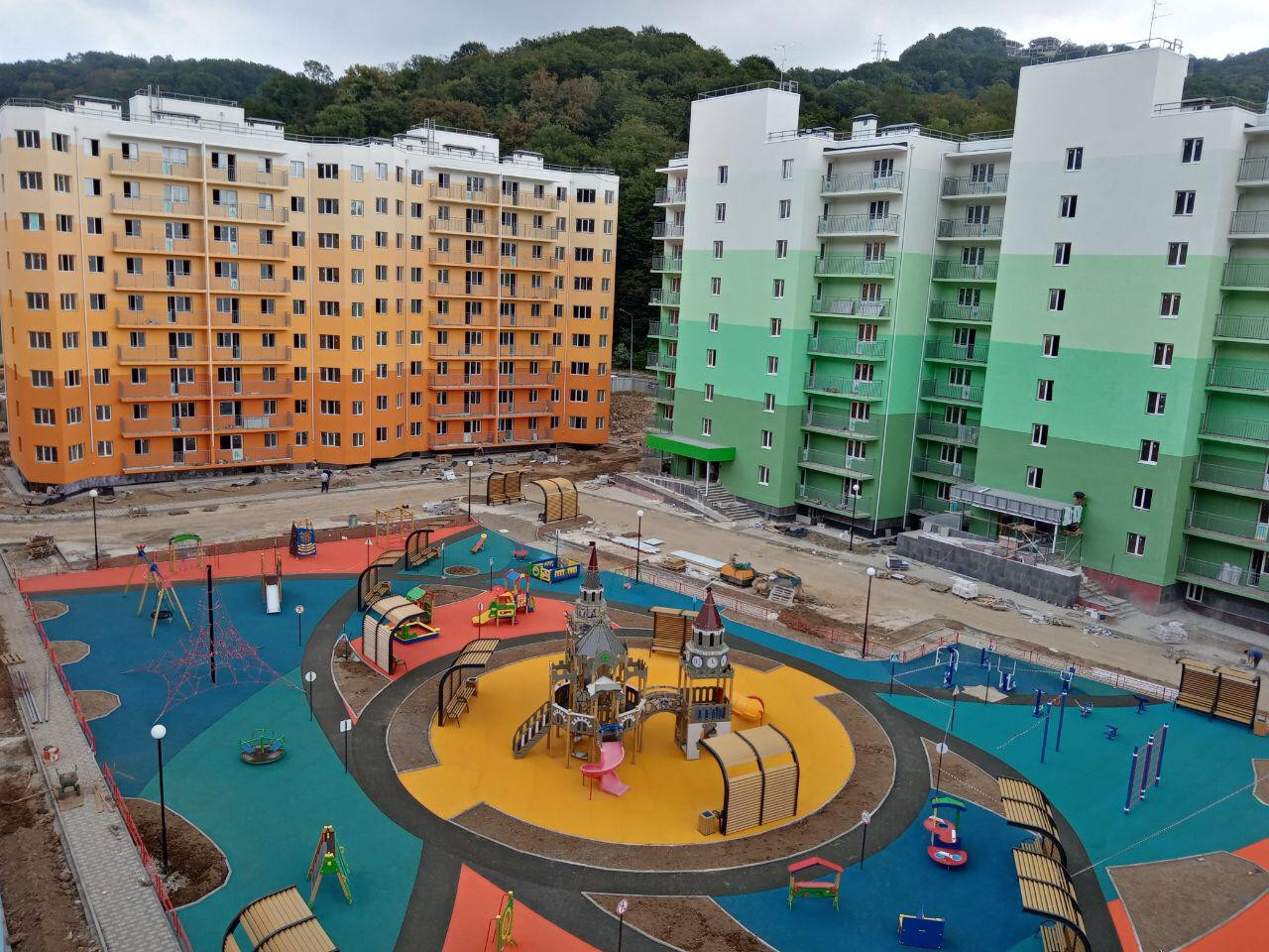 Горный воздух – это источник долголетия и здоровья. Здания комплекса уютно расположились между склонами гор, образуя цепочку жилых блоков, перемешанных объектами инфраструктуры. Красоты Сочинской природы останутся в шаговой доступности для любого жителя ЖК Министерские озёра.