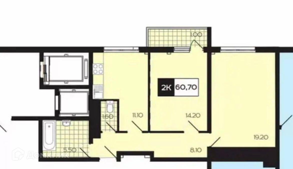 Общая площадь 60.7 м2