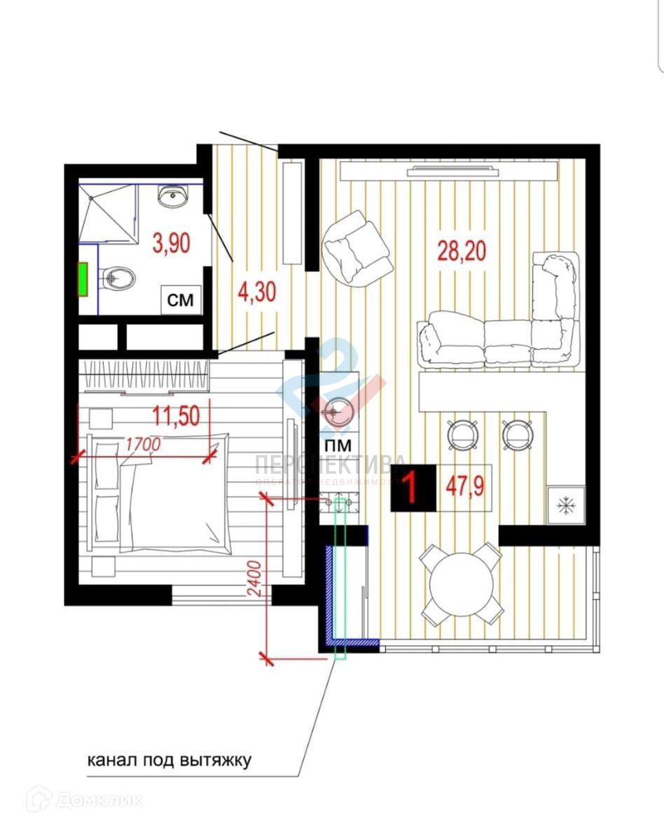 Общая площадь 47.2 м2