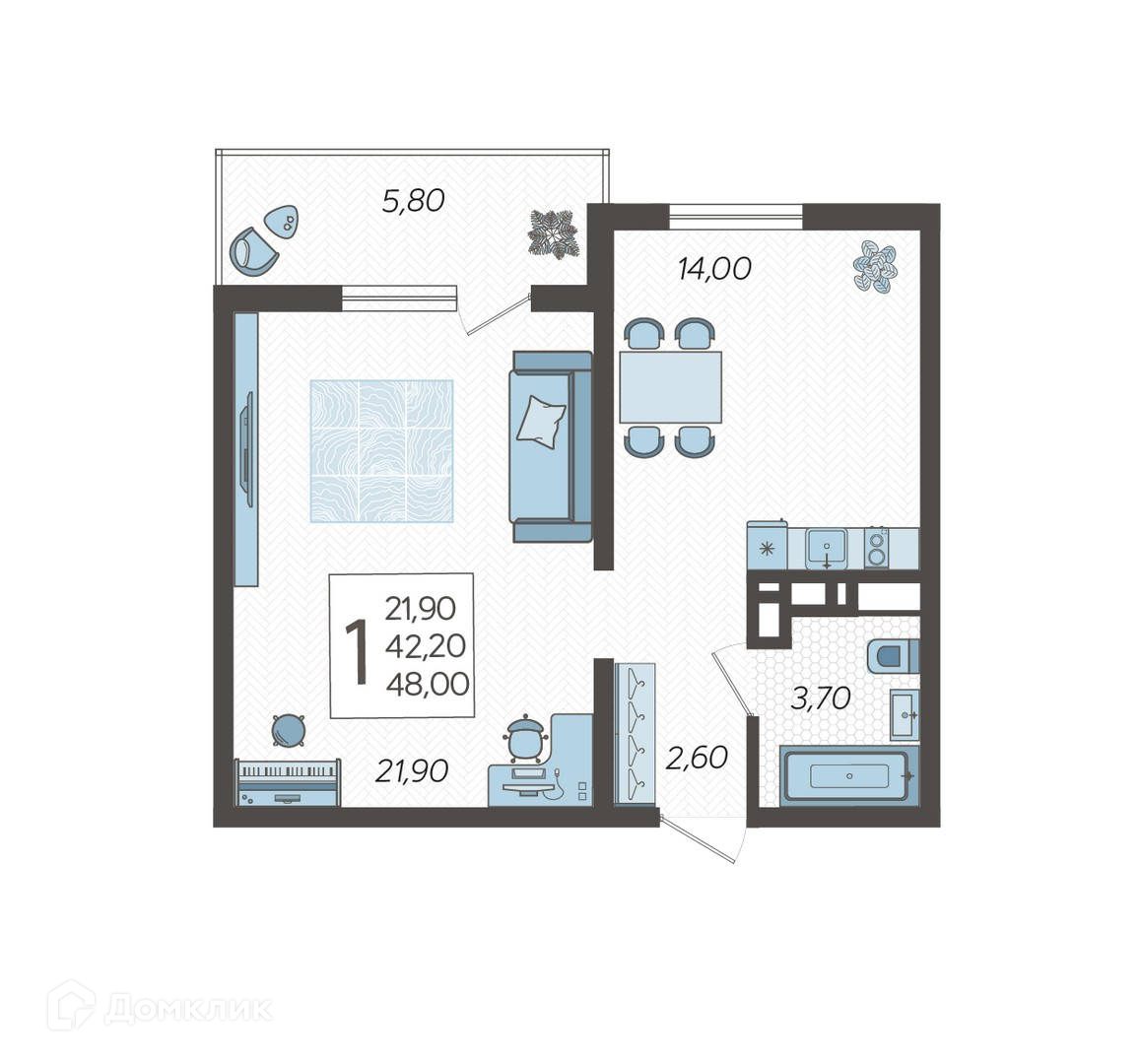 Общая площадь 48 м2