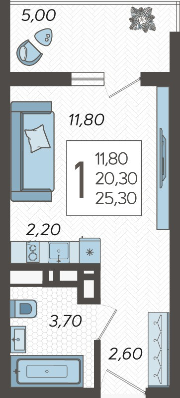 Общая площадь 25.3 м2
