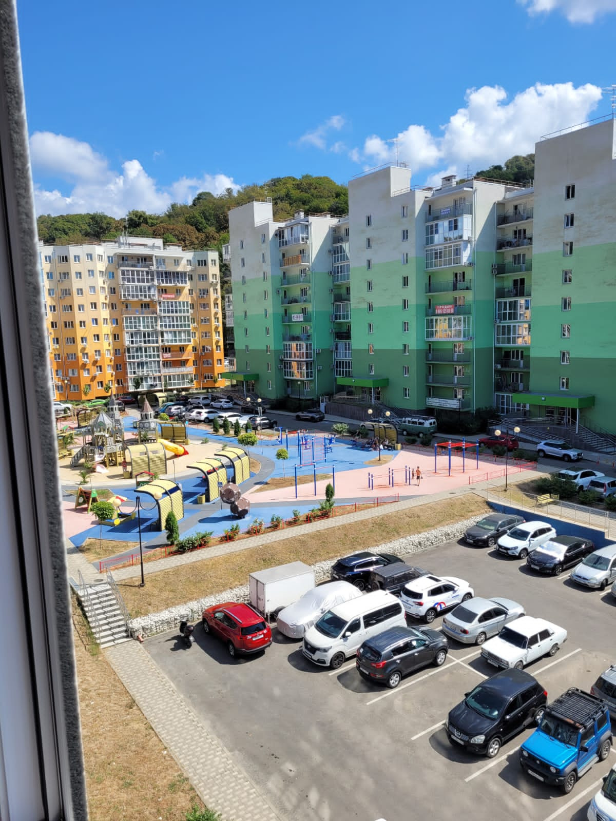 Территория комплекса полностью закрыта, большие детские и спортивные площадки.