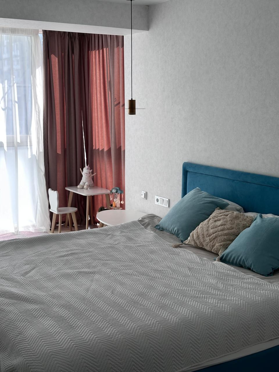Планиpoвка: кухня-гостиная, спальня с детской зоной, лоджия-кабинет, гардеробная