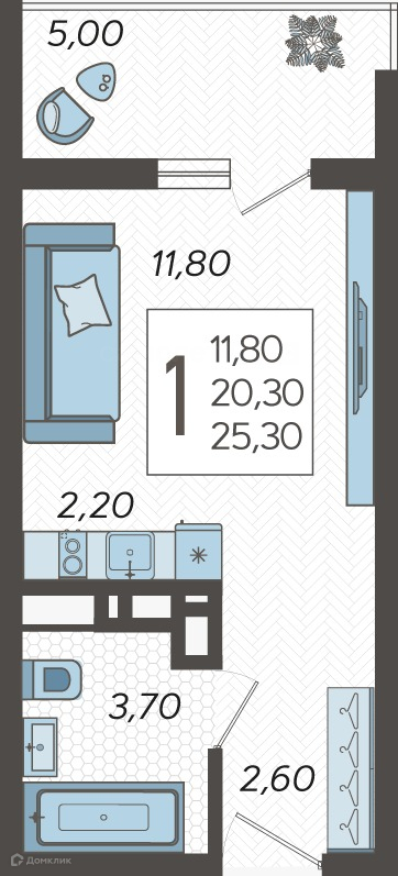 Общая площадь 26 м2