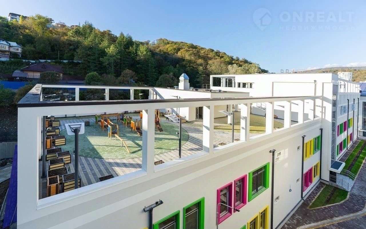 Построена и уже функционирует новая современная общеобразовательная гимназия 9 им. Н. Островского. Новая школа отвечает самым современным стандартам образования и оснащения и является крупнейшим учебным заведением в Сочи. До моря 7 мин. на автомобиле, на общ. транспорте 15 мин., до МореМолл 7 мин.