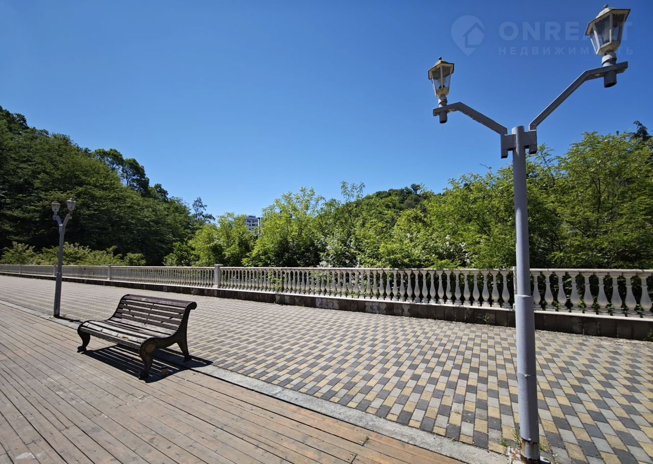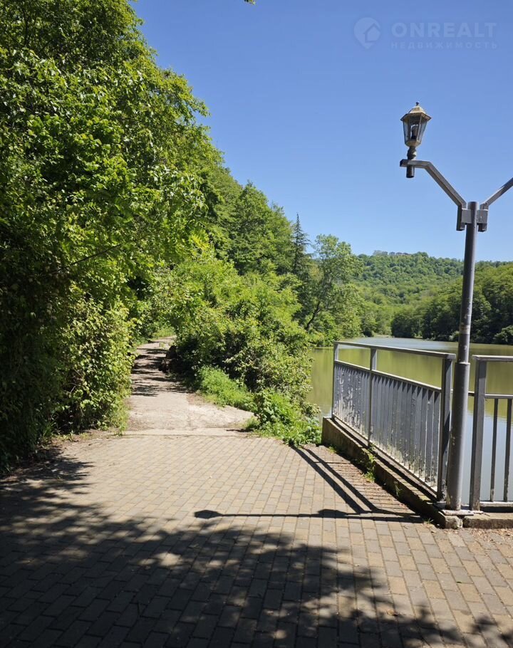 Вдоль комплекса набережная реки Бзугу, где приятно прогуляться или посидеть на лавочке.