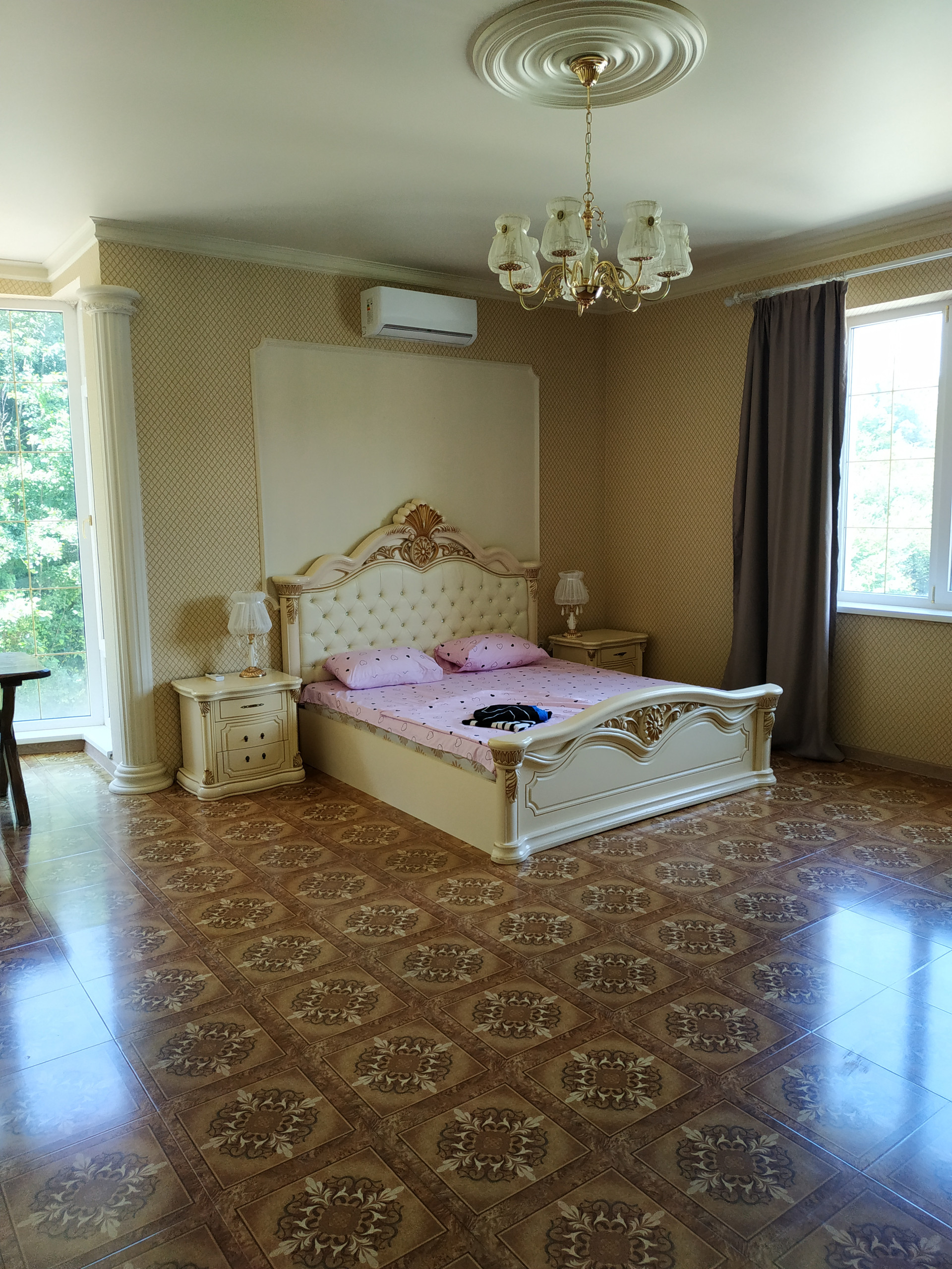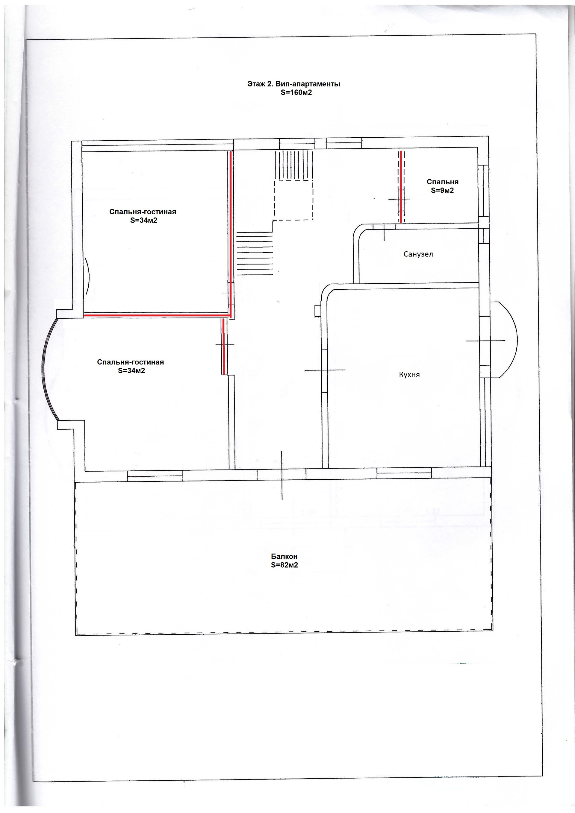 2 этаж (вип) - 2 гостиные-спальни по 35 м2, комната 11 м2 (спальня или кабинет), кухня 45 м2, санузел 12м2 с ванной, коридор 48м2, открытый балкон/терраса 86м2.