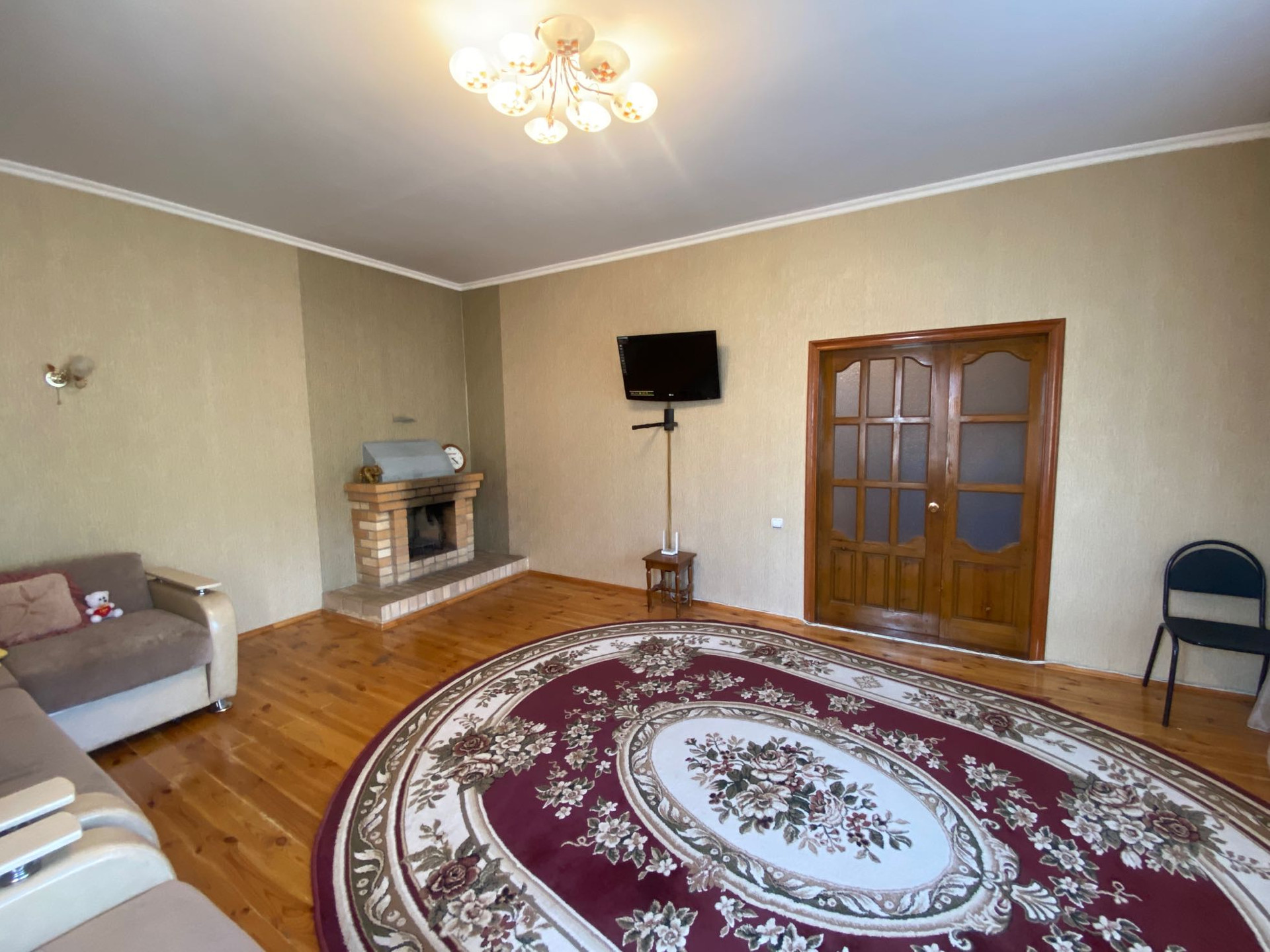 1 этаж: хол с дубовой лестницей на второй этаж, большой зал с камином, санузел, кухня, большая комната прихожая с выходом в гараж.