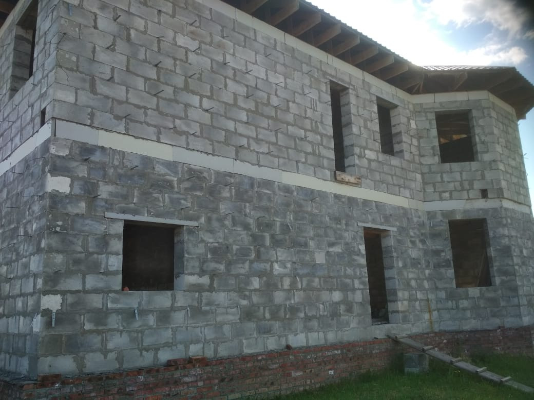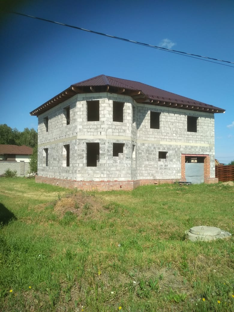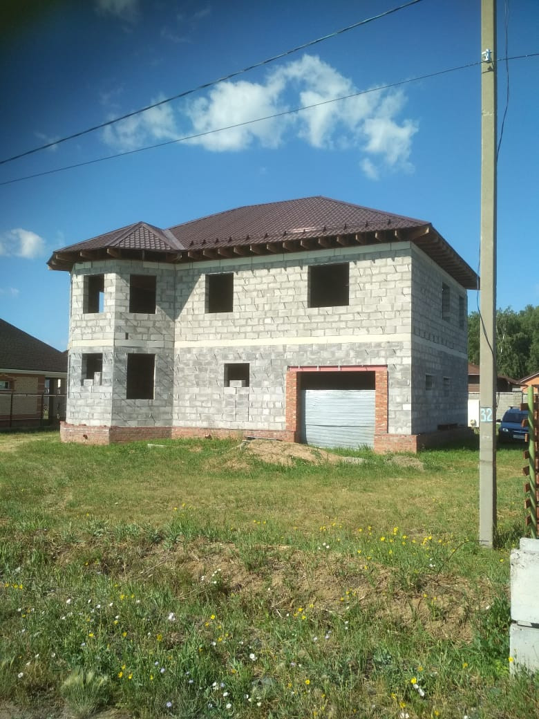 Молодой район, быстрозаселяемый перспективными людьми. Большой плюс это центральный водопровод и канализация. Все заведено уже в дом. Газ проходит рядом. По проекту это должен быть двухэтажный дом с удобным расположением комнат, просторным залом, большими окнами. Примерный метраж 300 кв.м. Дом построен из пенобетонных блоков, являющихся одним из самых надежных и теплых материалов сегодня. Поставлены стены, положена крыша из метало-черепицы. Гараж в доме. Просторный участок. Дом  оформлен. Подходит под ипотеку.