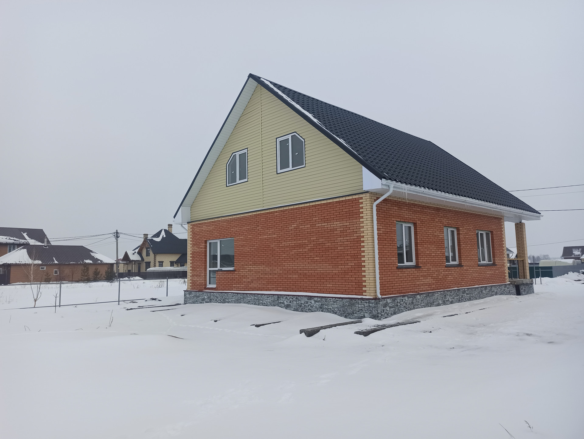 Отличное предложение для мечтающих жить за городом! Всего в 15 км и 15 минутах езды от города. Дом новый, основательный, построен из кирпича, утеплен пеноплэксом+керамзитоблоки. Фундамент ленточный, выстоялся в течении пары лет. Первый этаж состоит из трех комнат (30 кв. +12 кв. +16 кв. ) + кухня (18 кв. ) + сан/узел и место для котельной. Второй этаж свободной планировки, где есть возможность разместить несколько спальных комнат и сан/узел ( 87 кв). Первый этаж с отделкой ( натяжной потолок, выровненные стены, пол керамогранит и ламинат).