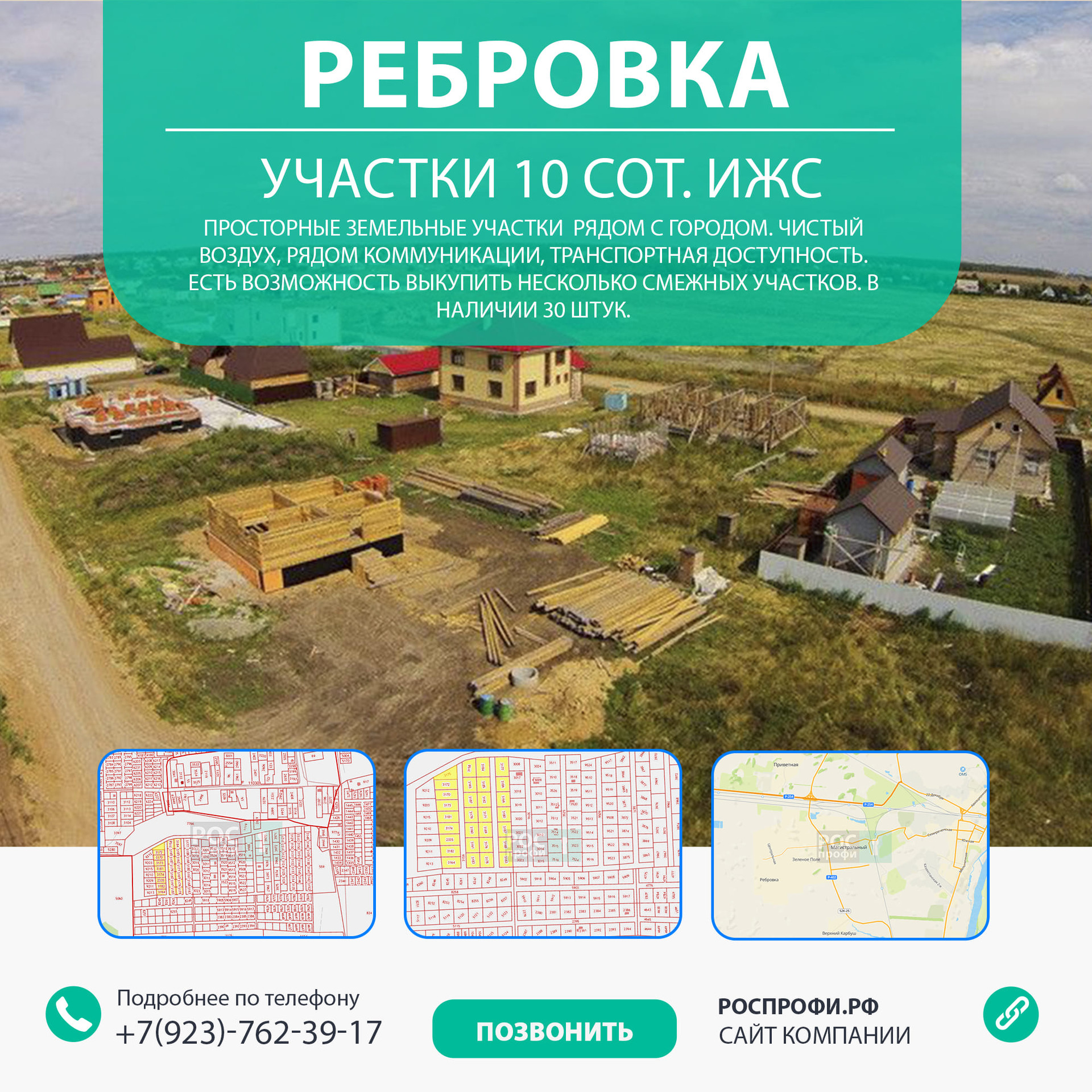 Компания "Роспрофи" предлагает к продаже земельные участки в "Ребровке".