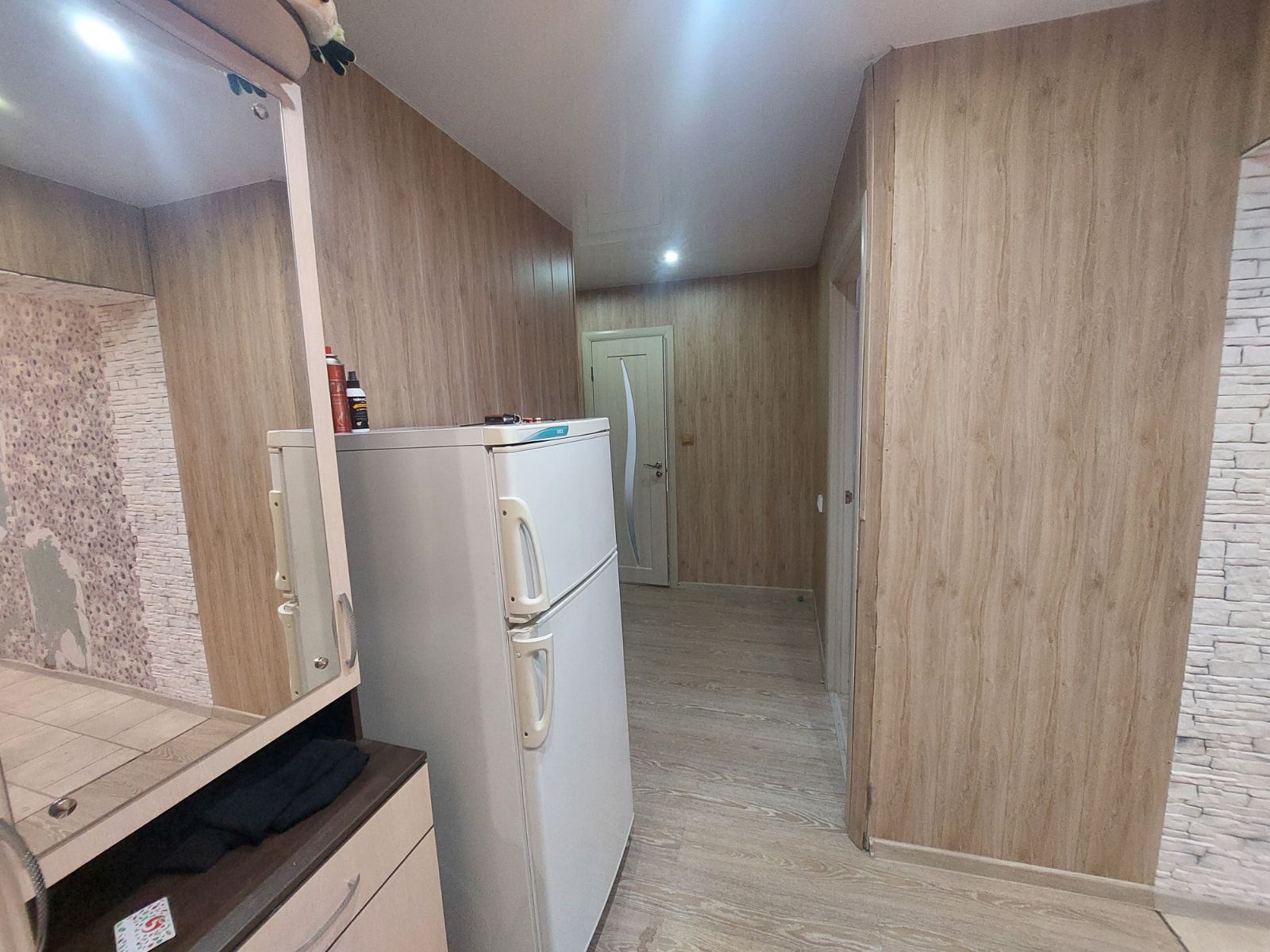 В квартире две большие изолированные комнаты на разные стороны, совмещенный санузел, большая вместительная прихожая и лоджия с двумя выходами на кухню и комнату.