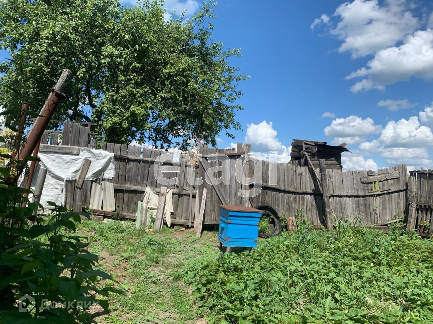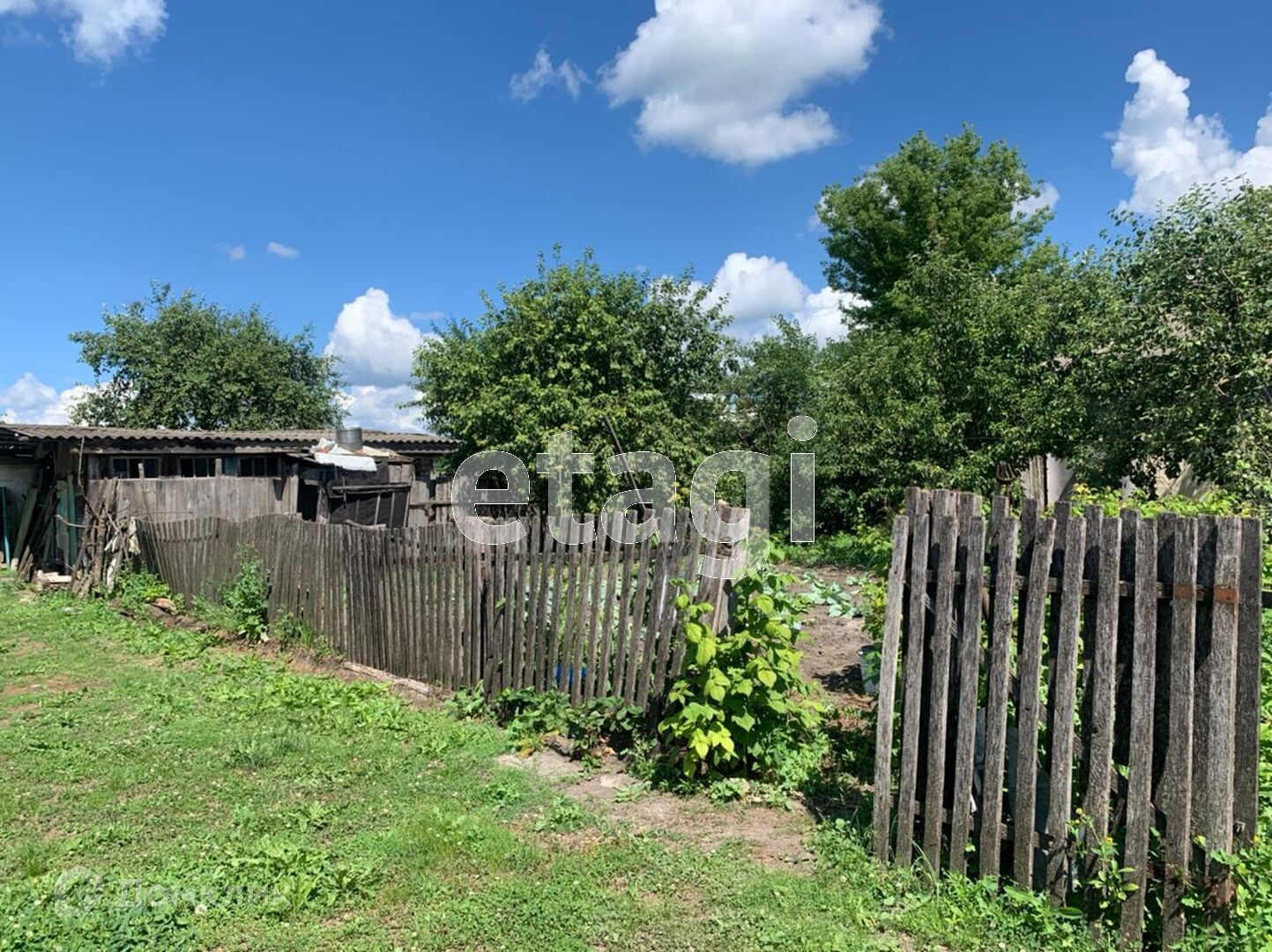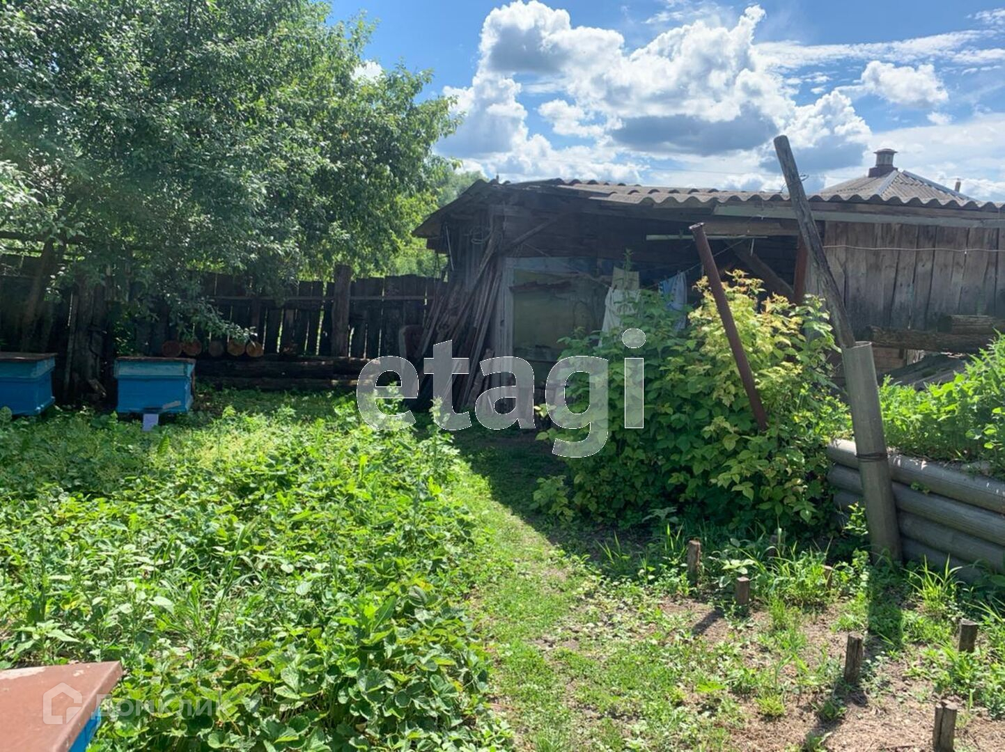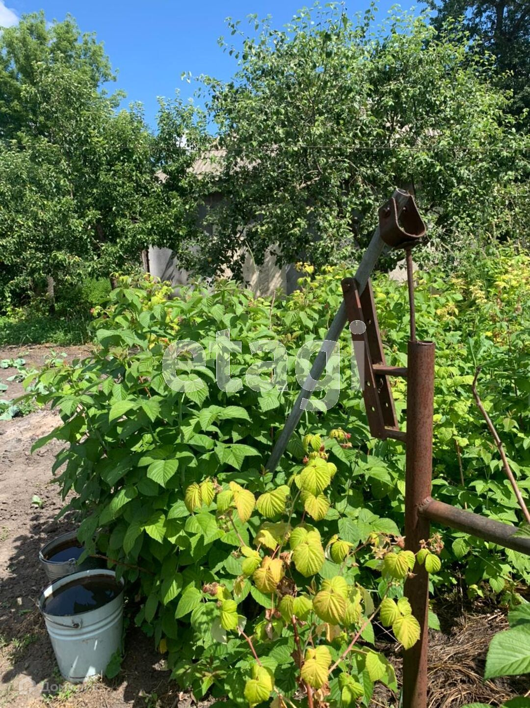 Огород 60 соток, во дворе есть клумба по 1 сотка, клубника, малина, яблони, все на территории двора.