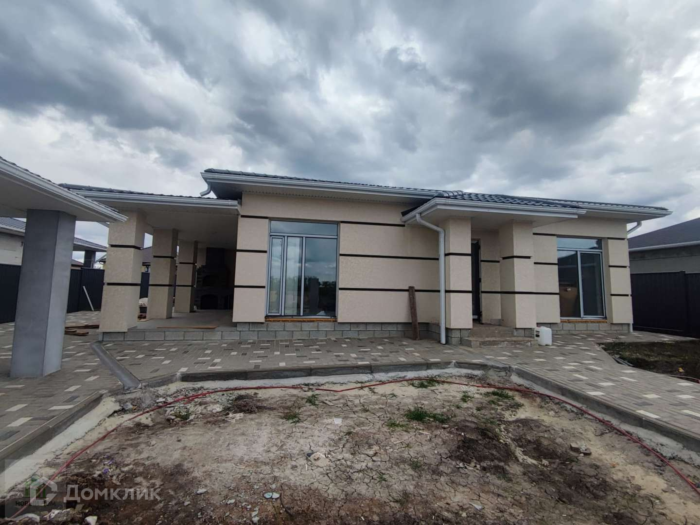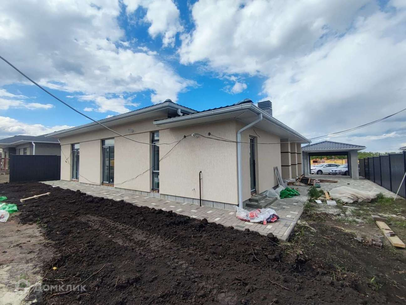 Есть крытый навес для автомобиля.