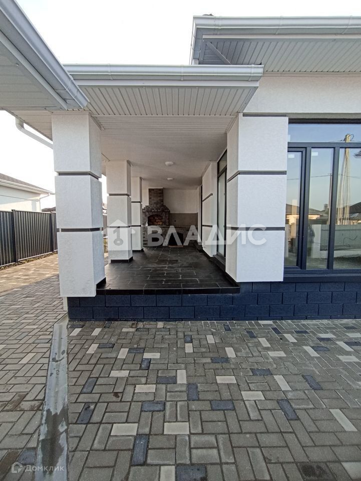 Внутреннее состояние дома: общая площадь 124м2. В доме 3 спальни,просторная кухня-гостиная , коридор, гардеробная, 2 санузла, технические помещения (гардероб). Напольное покрытие дома выполнено из плитки.  Потолки натяжные.  Окна ПВХ панорамные.