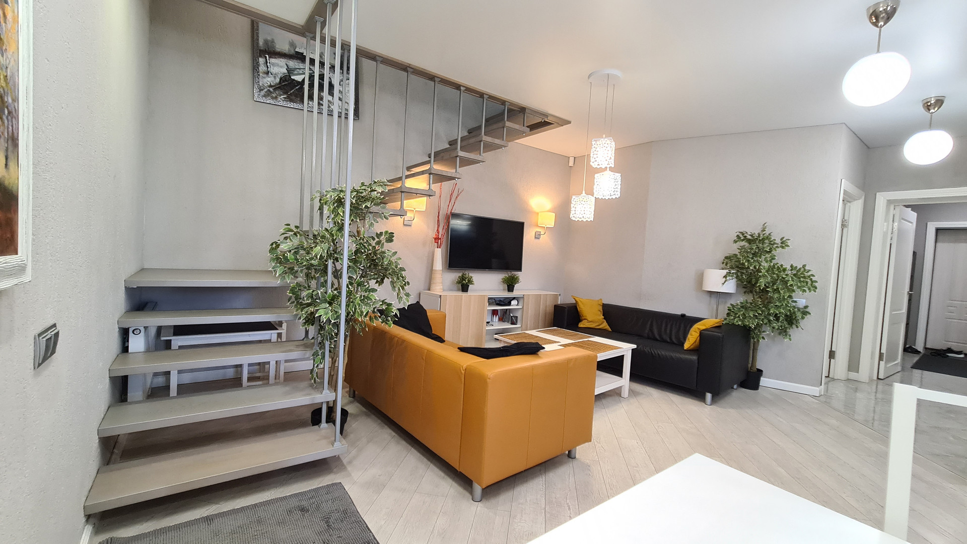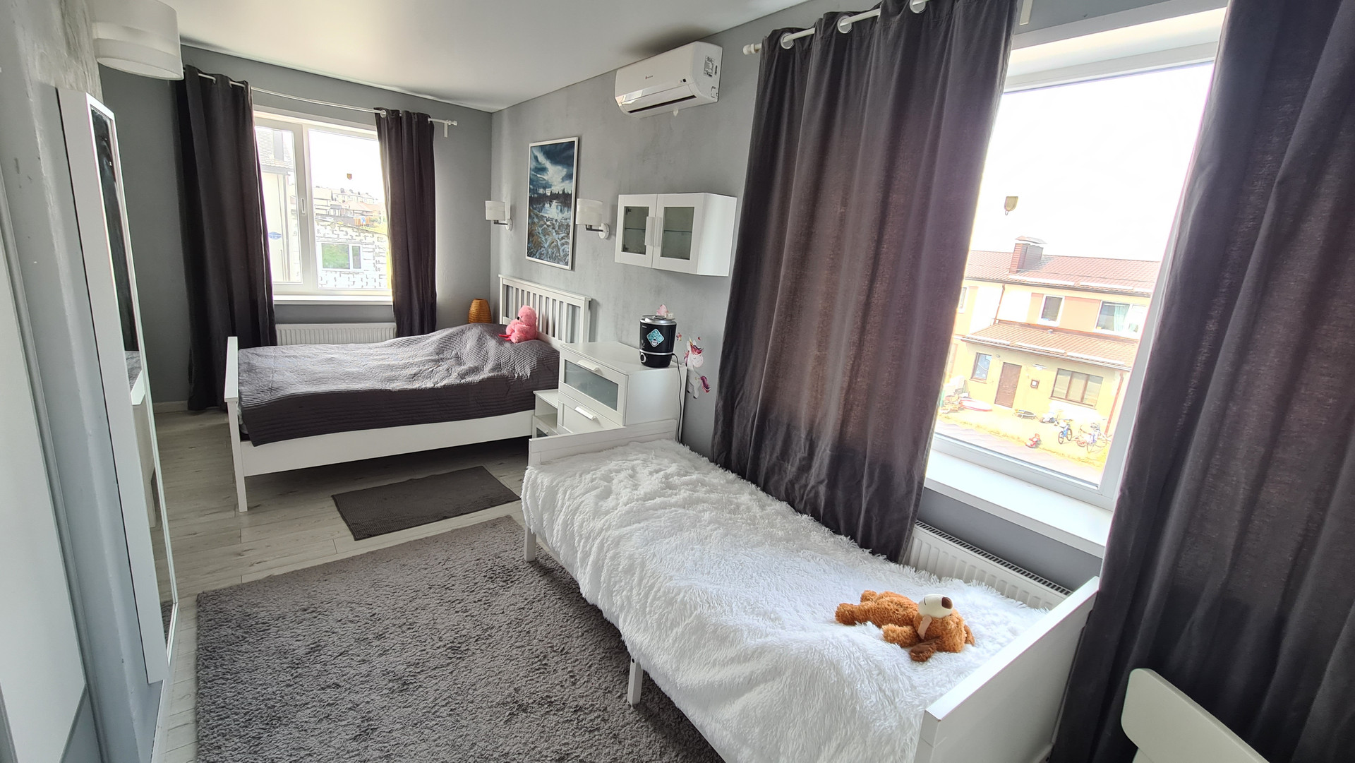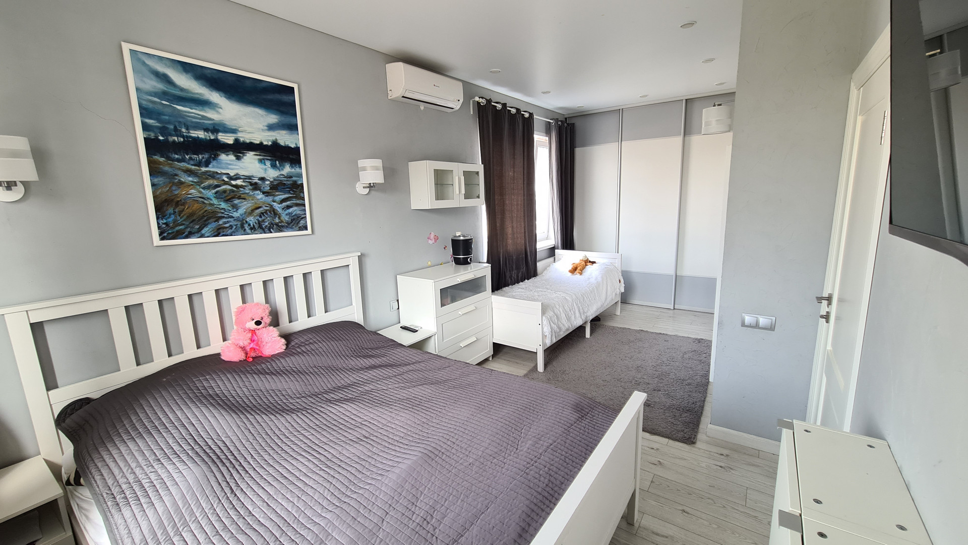 Также установлены охранная сигнализация и кондиционеры, проведена разводка кабелей TV в каждую комнату.