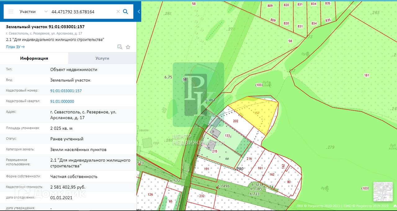 Участок 20 соток (ИЖС) расположен в г. Севастополь, Балаклавский район, село Резервное, переулок Арсланова. Участок неправильной формы, с уклоном.
