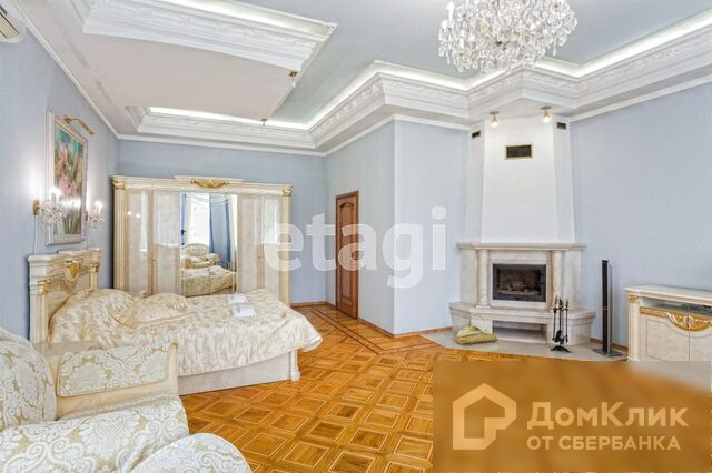 2-й этаж – две спальни мебель Испания спецзаказ, паркет художественный наборной, домашний кинотеатр с экраном 3,5мх3,5м, два камина, паркет штучный наборной, потолки подвесные с подсветкой и лепниной.