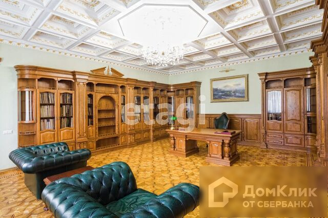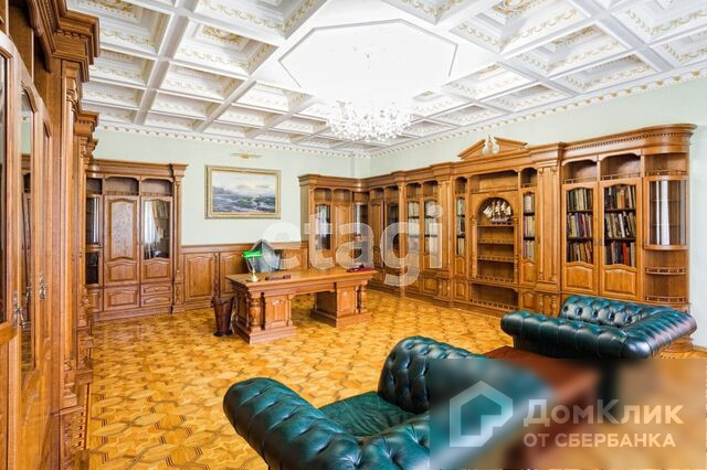 3-й этаж – детская, кабинет 45м2, отделка и мебель дубовая, потолки подвесные с лепниной, паркет художественный наборной, два камина, два санузла, художественная студия 70м2.