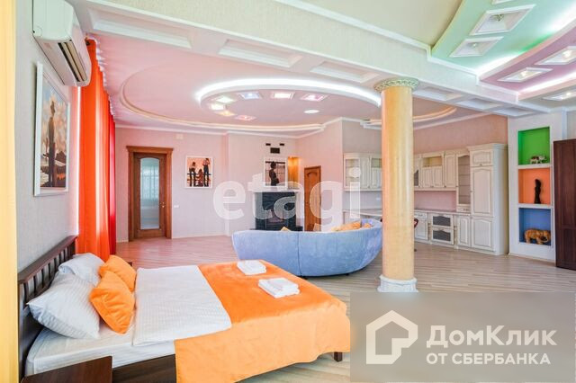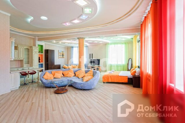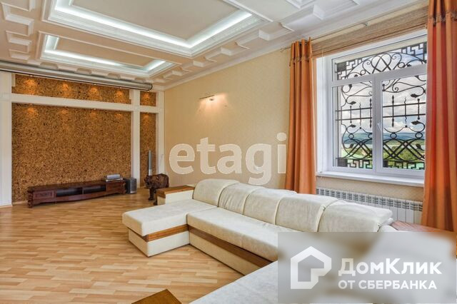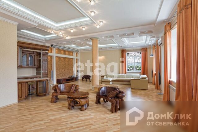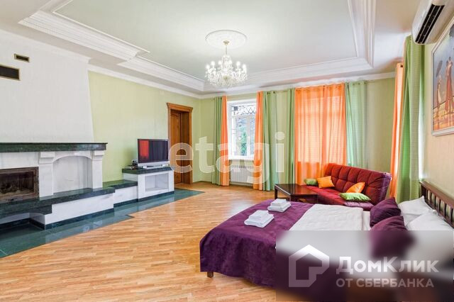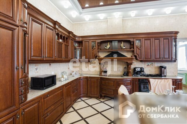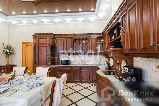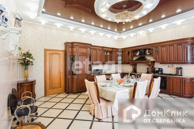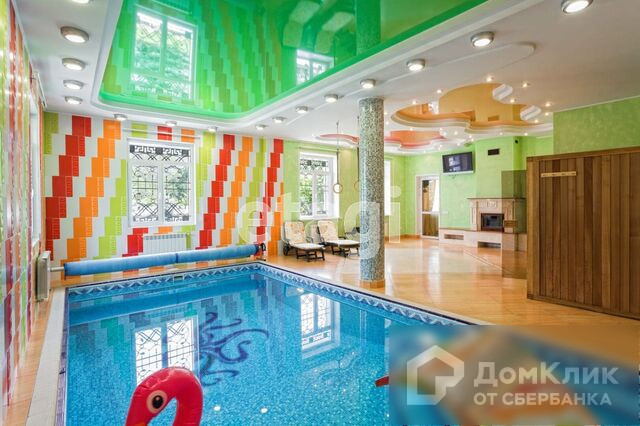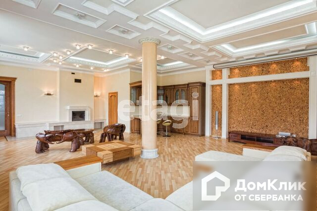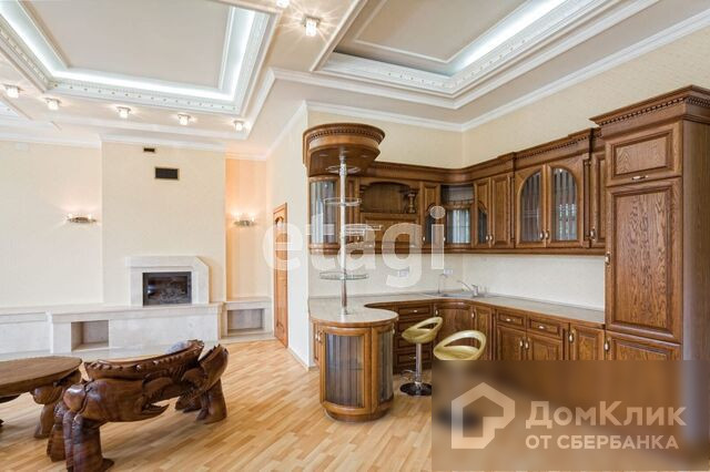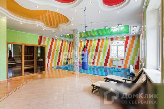 1-й этаж – гостиная с камином, меблированная кухня-столовая c натяжными французскими потолками, два санузла, теплые полы, потолки подвесные с подсветкой и лепниной, паркет штучный наборной, камин, бассейн 38м3 с водопадом, спортзал, сауна.
